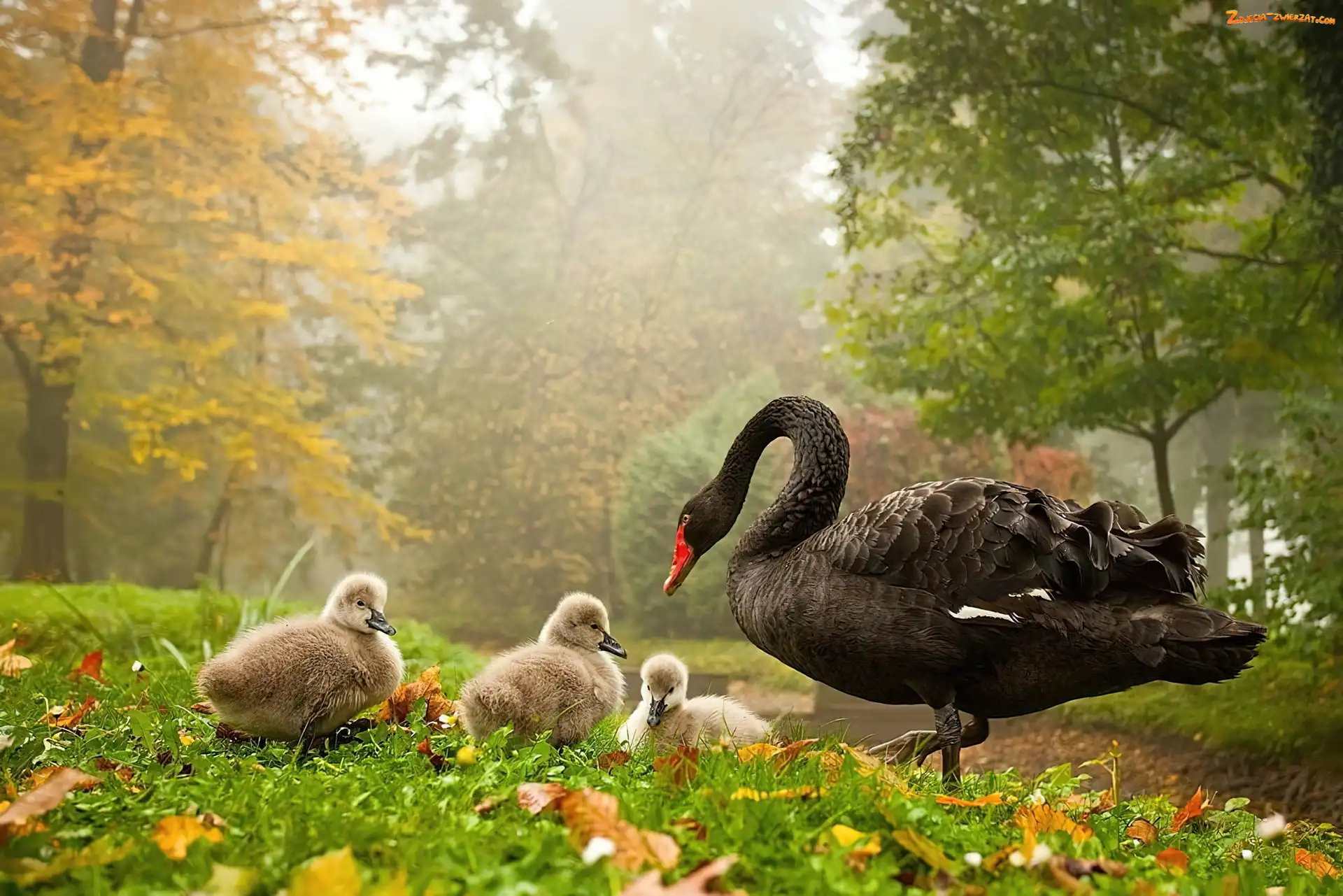 Zdjęcie: Łabędz, Park, Czarny, Pisklęta