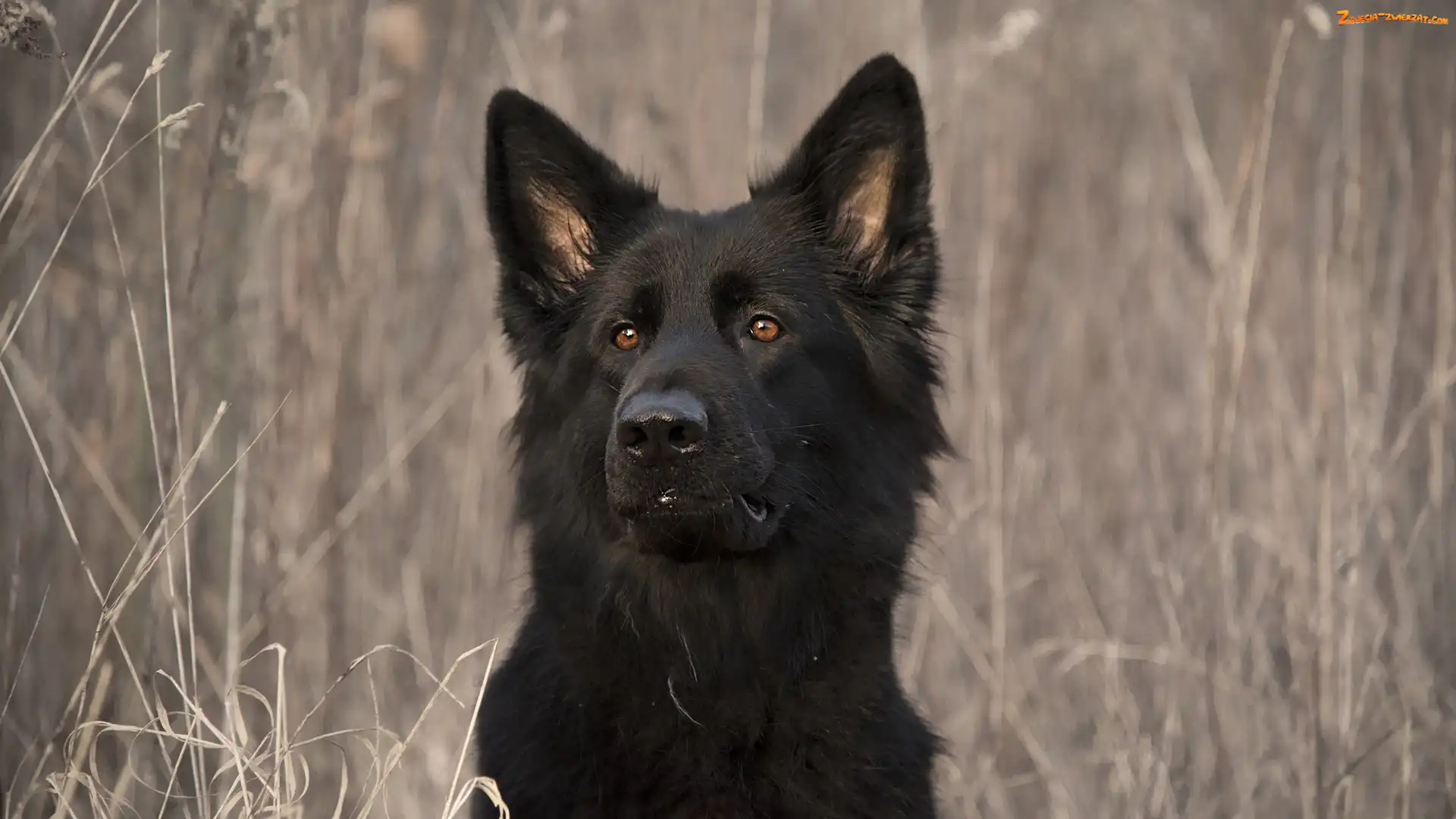 Zdjęcie: Czarny owczarek niemiecki, Trawa, Pies, Mordka