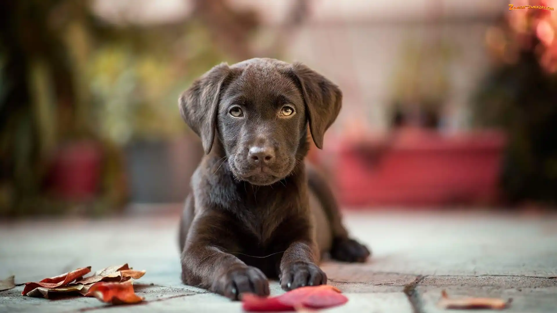 Zdjęcie: Liście, Czekoladowy, Tło, Rozmyte, Labrador retriever, Chodnik