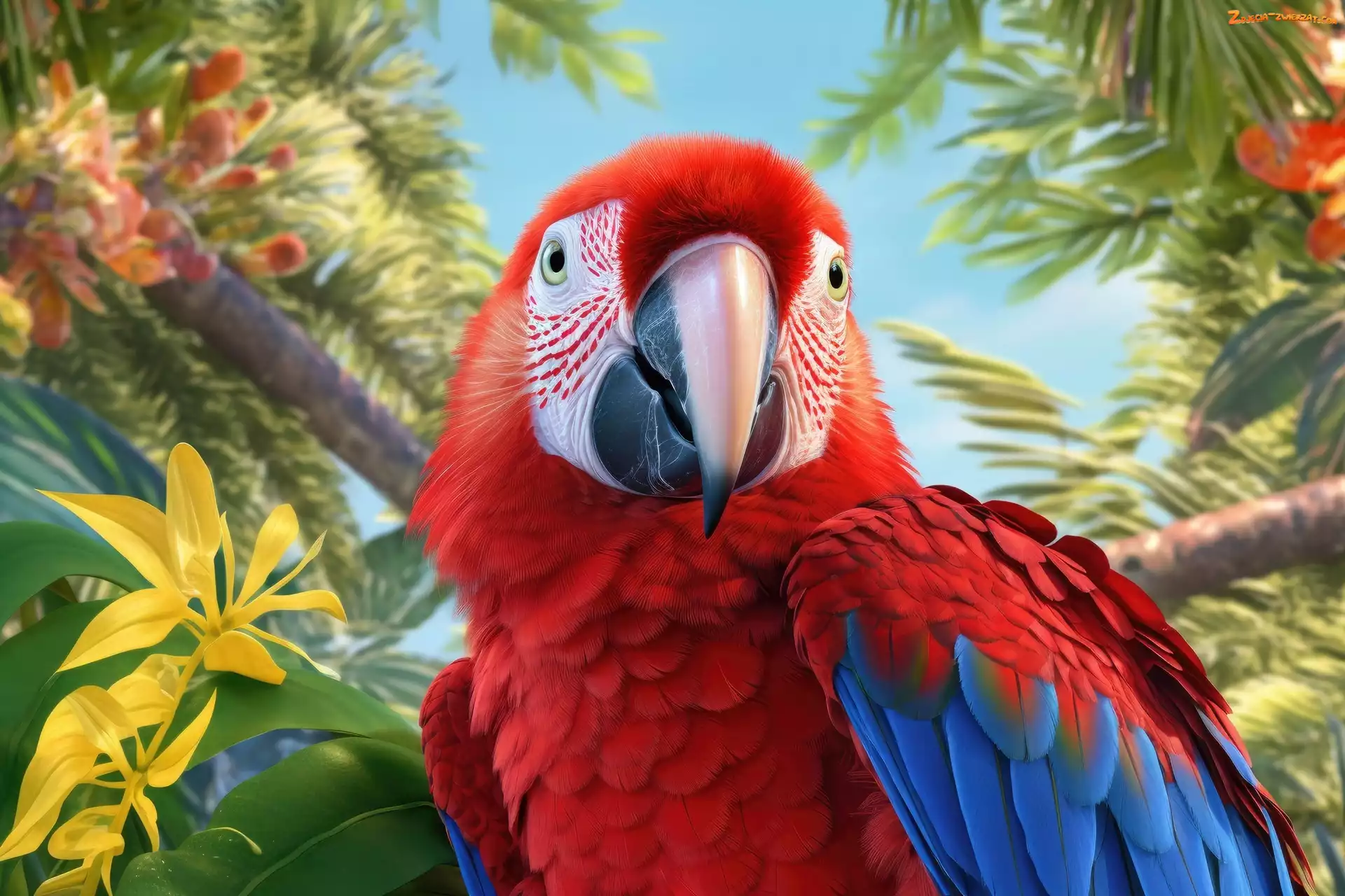Zdjęcie: Kwiaty, Czerwona, Grafika, Papuga, Ara
