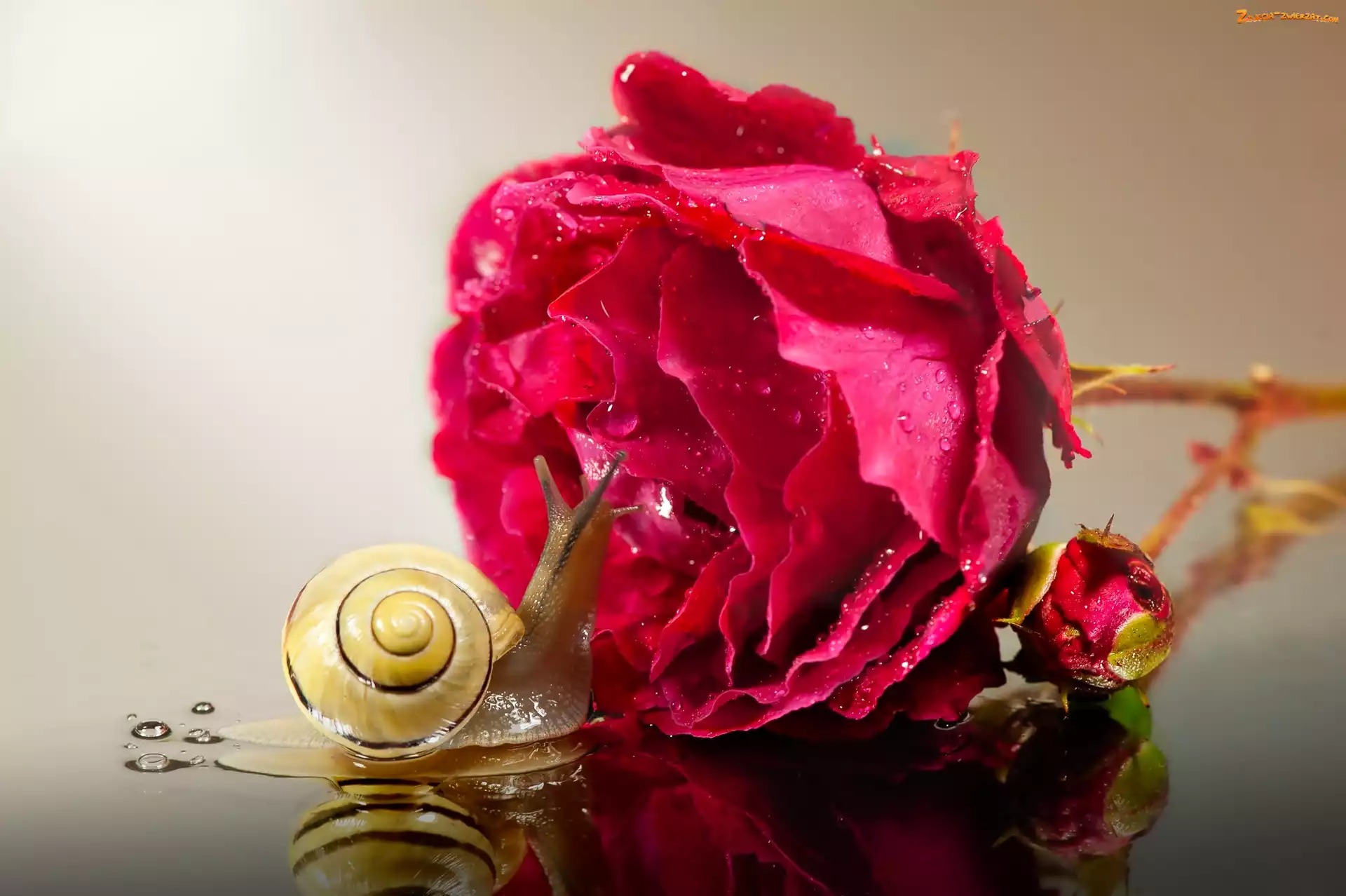 Zdjęcie: Czerwona, Krople, Ślimak, Róża