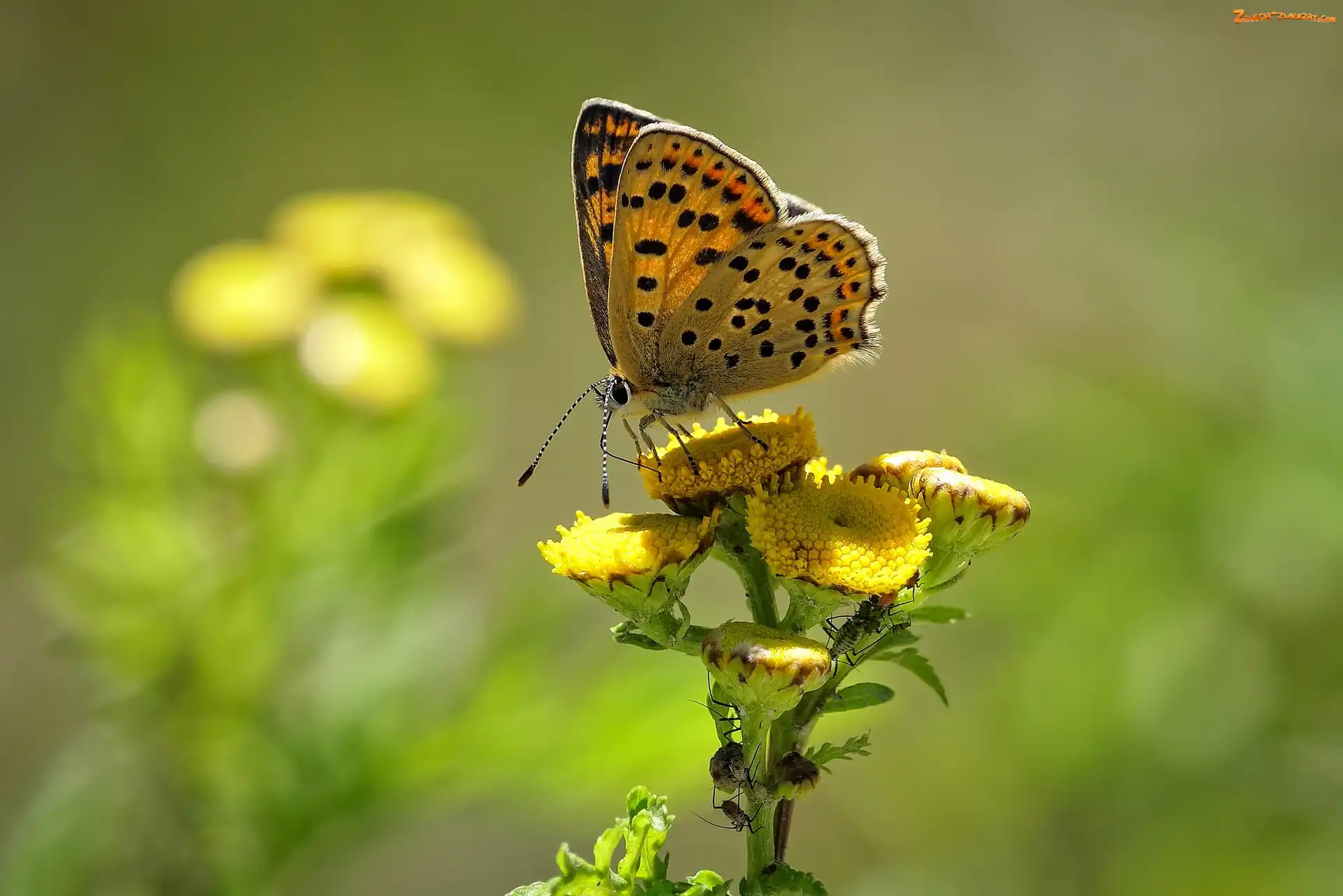 Zdjęcie: Czerwończyk uroczek, Kwiaty, Motyl, Żółte