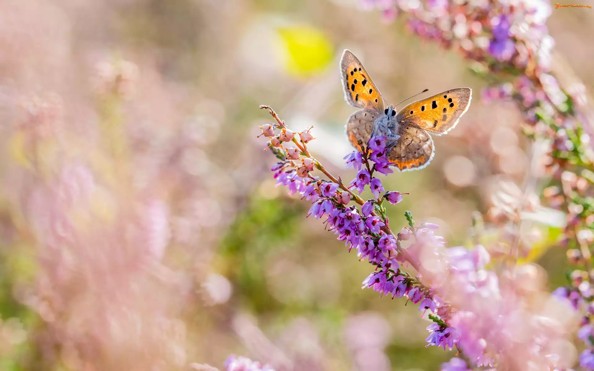 Czerwończyk żarek, Wrzos, Motyl, Kwiaty