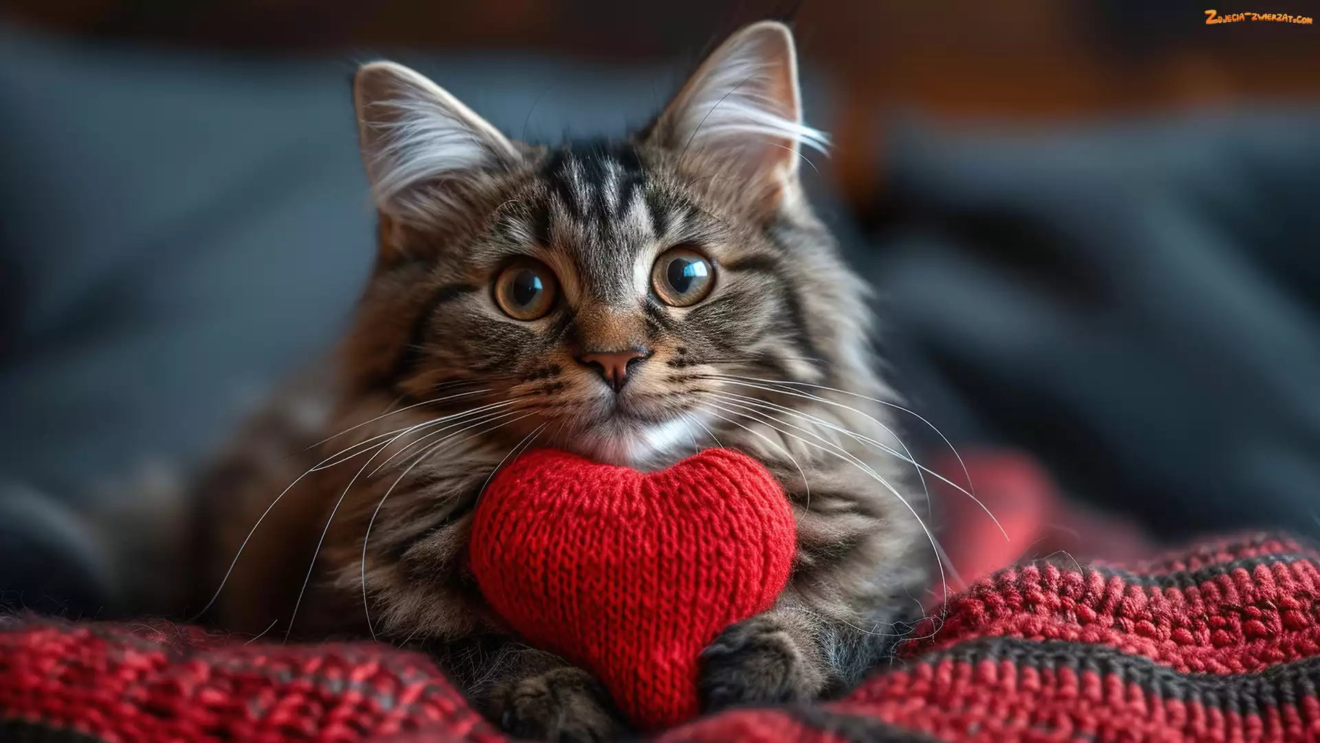 Zdjęcie: Serce, Czerwone, Koc, Szary, Kot