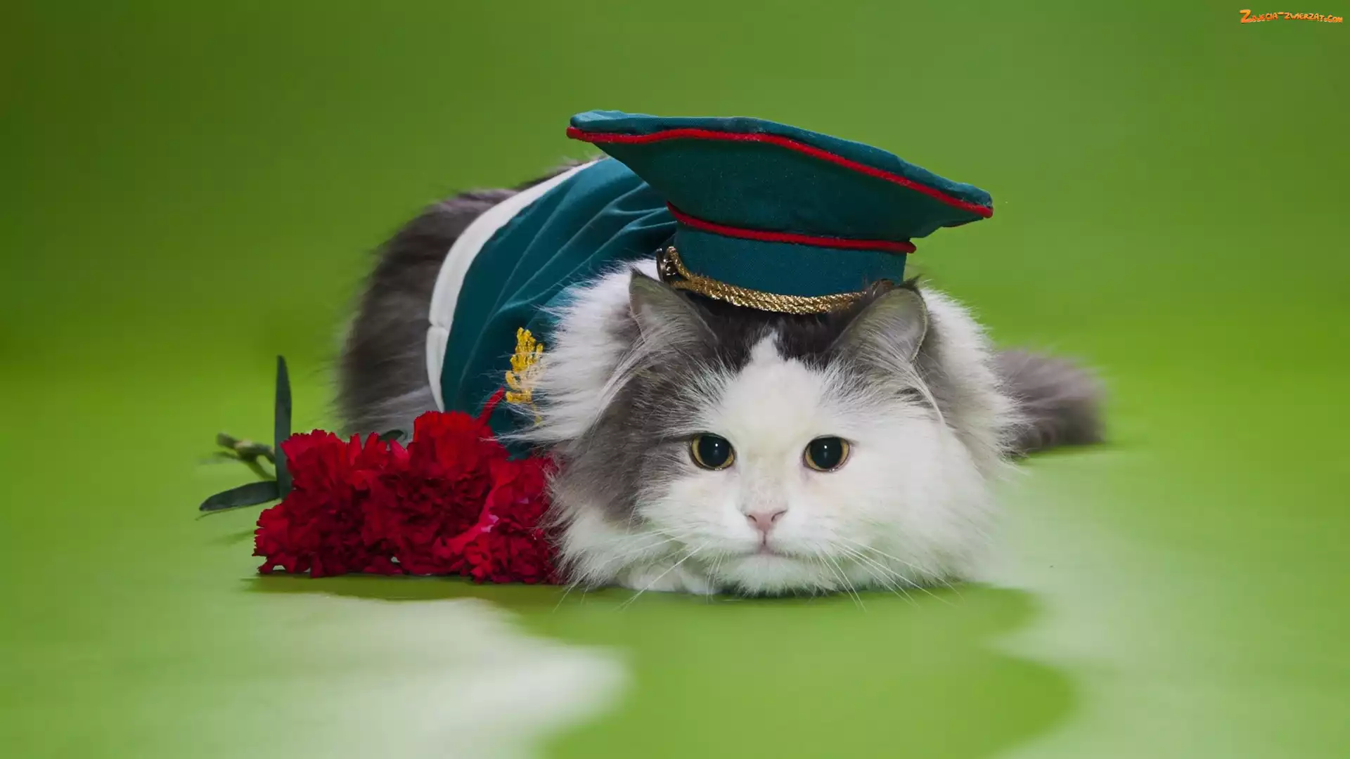 Zdjęcie: Czerwone, Czapka, Kot, Kwiaty