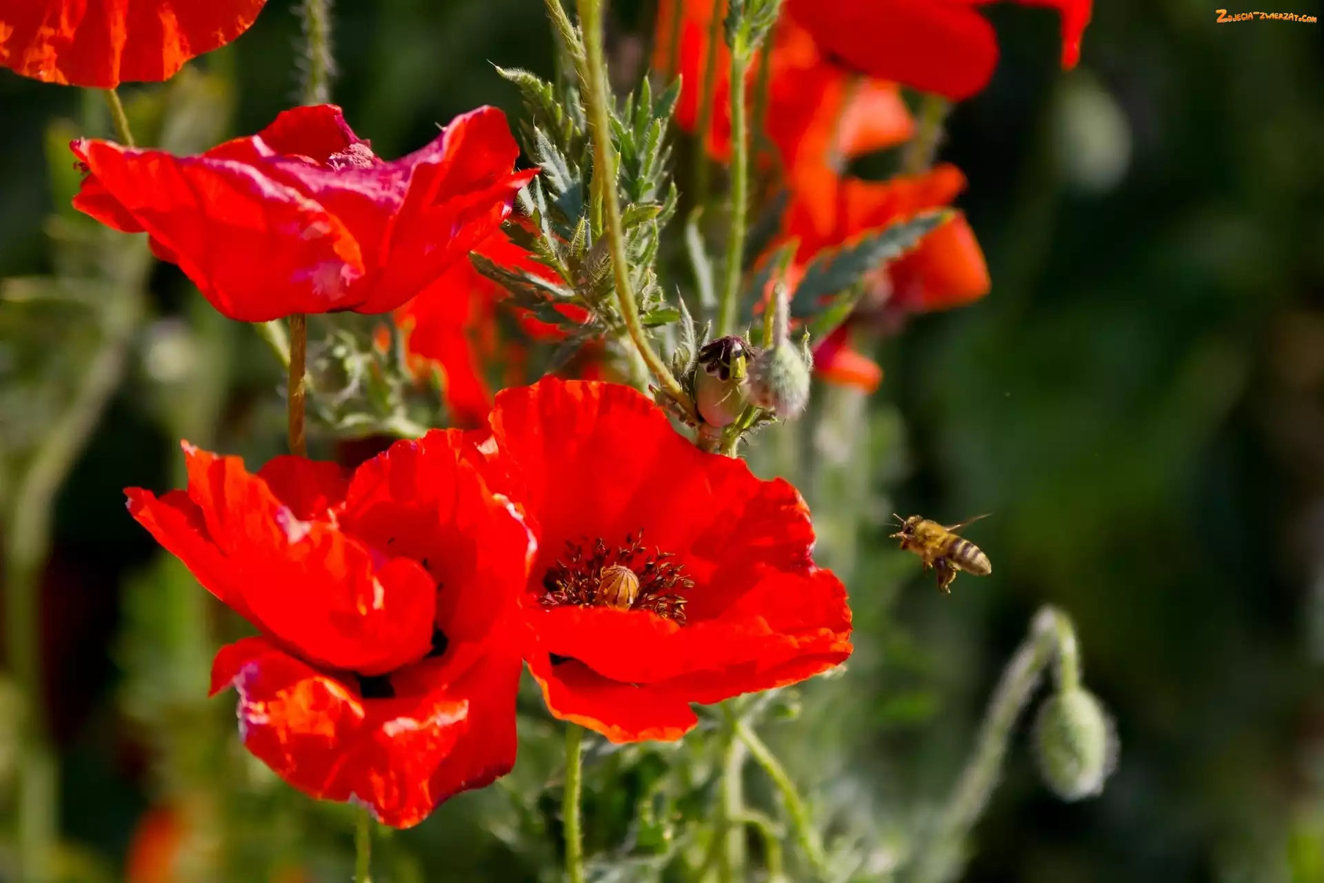 Zdjęcie: Pszczoła, Czerwone, Maki