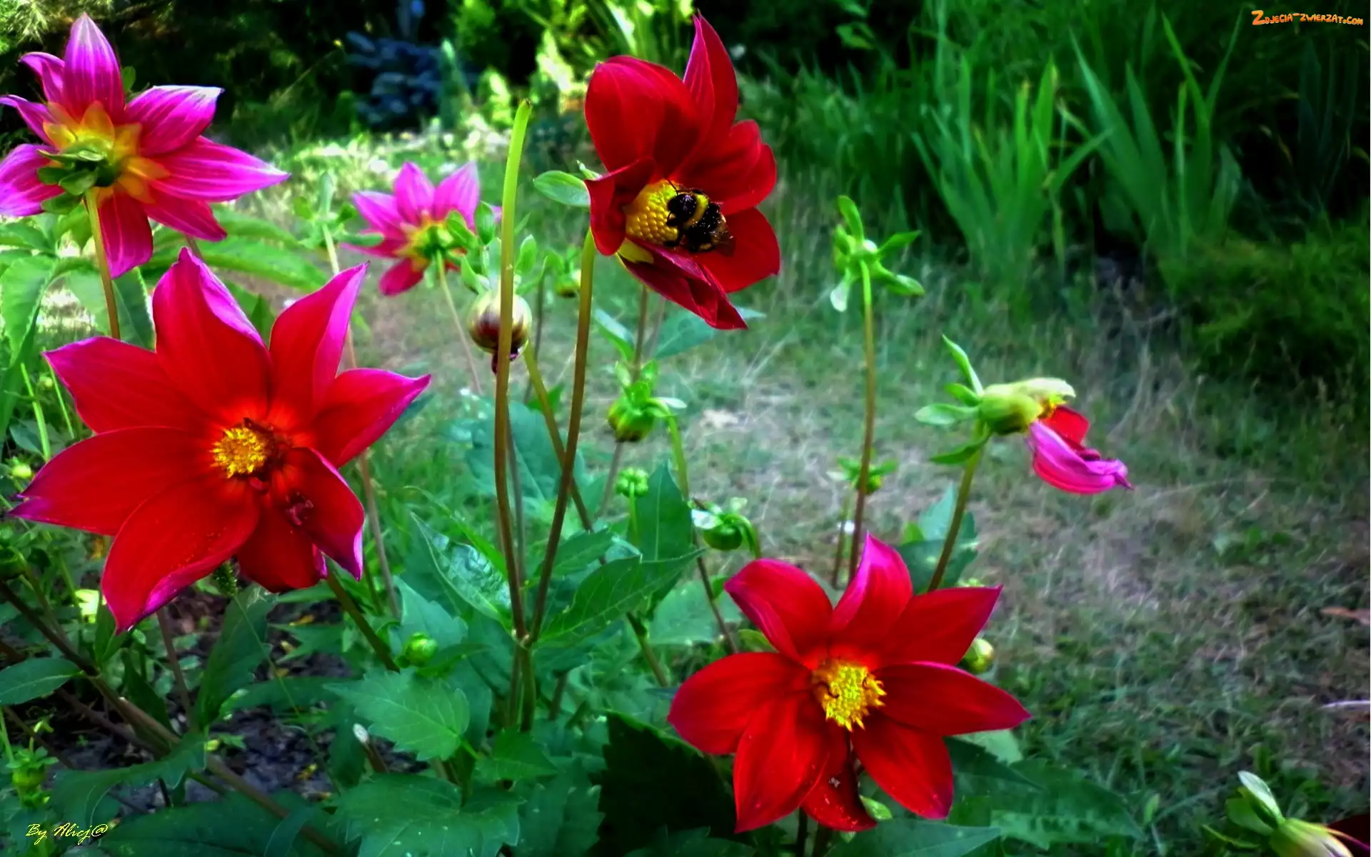 Zdjęcie: Trzmiel, Czerwone, Dalie