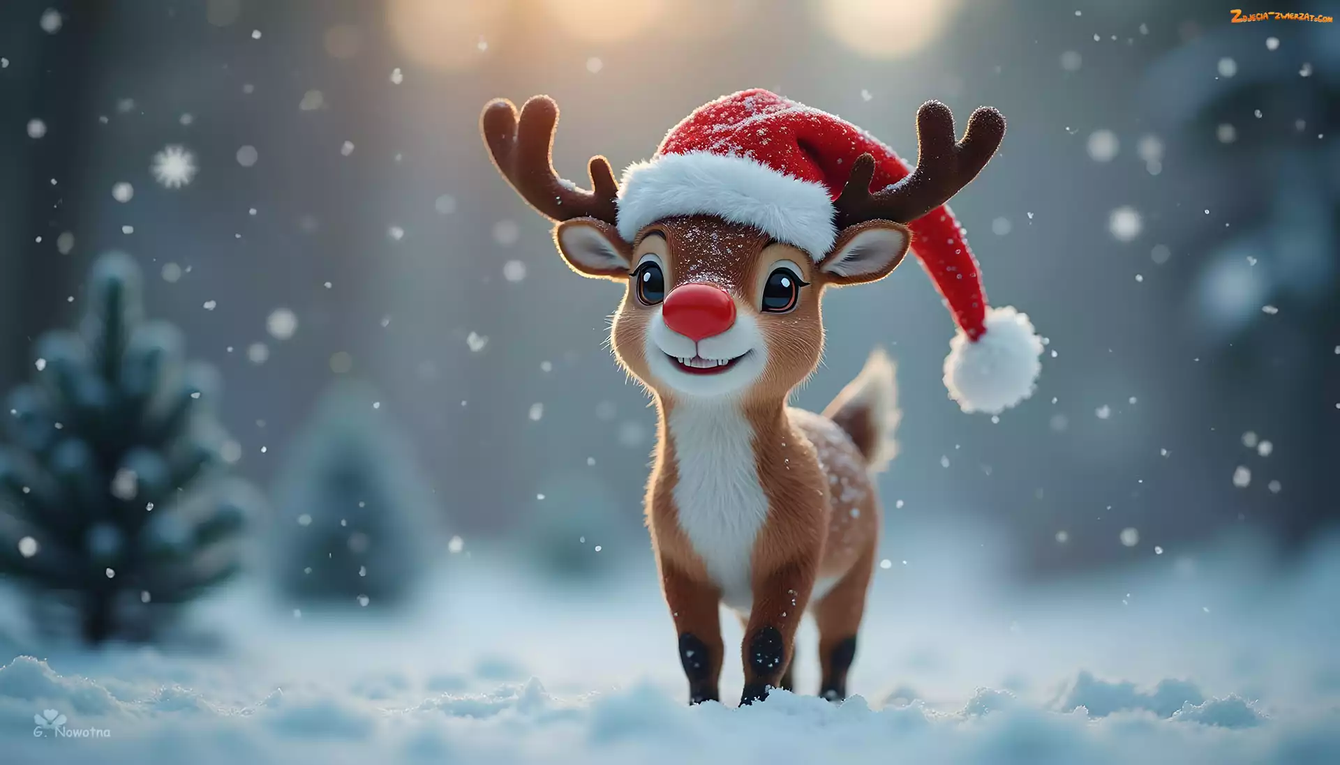 Grafika, Renifer, Rudolf, Czerwononosy, Czapka, Mikołaja