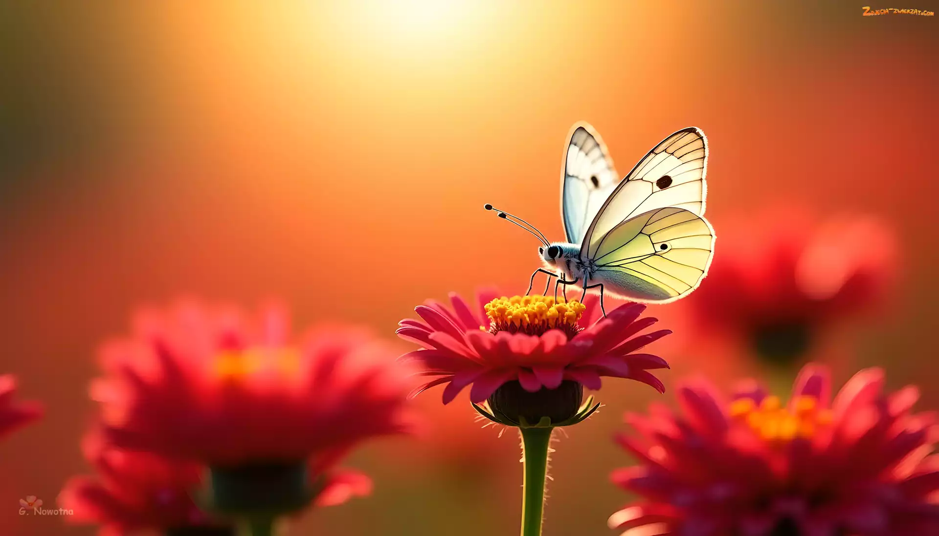 Zdjęcie: Kwiat, Czerwony, Grafika, Biały, Motyl