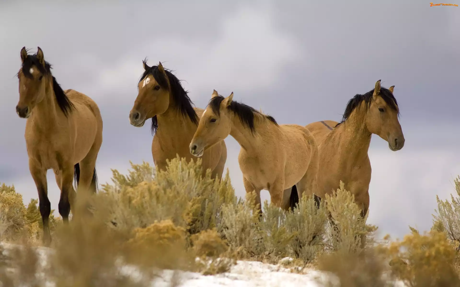Zdjęcie: Konie, Cztery, Kasztanowe