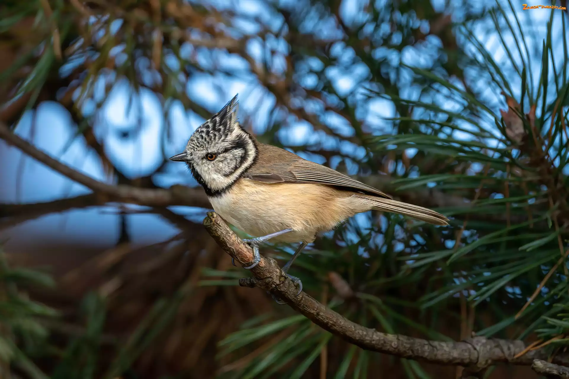 Zdjęcie: Sikora, Czubatka europejska, Gałązka, Ptak