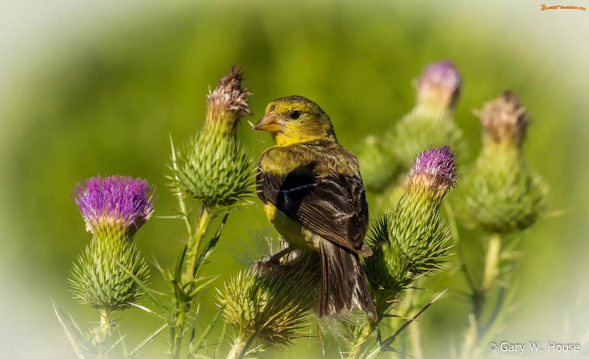 Zdjęcie: Czyż złotawy, Oset, Ptak, Roślina