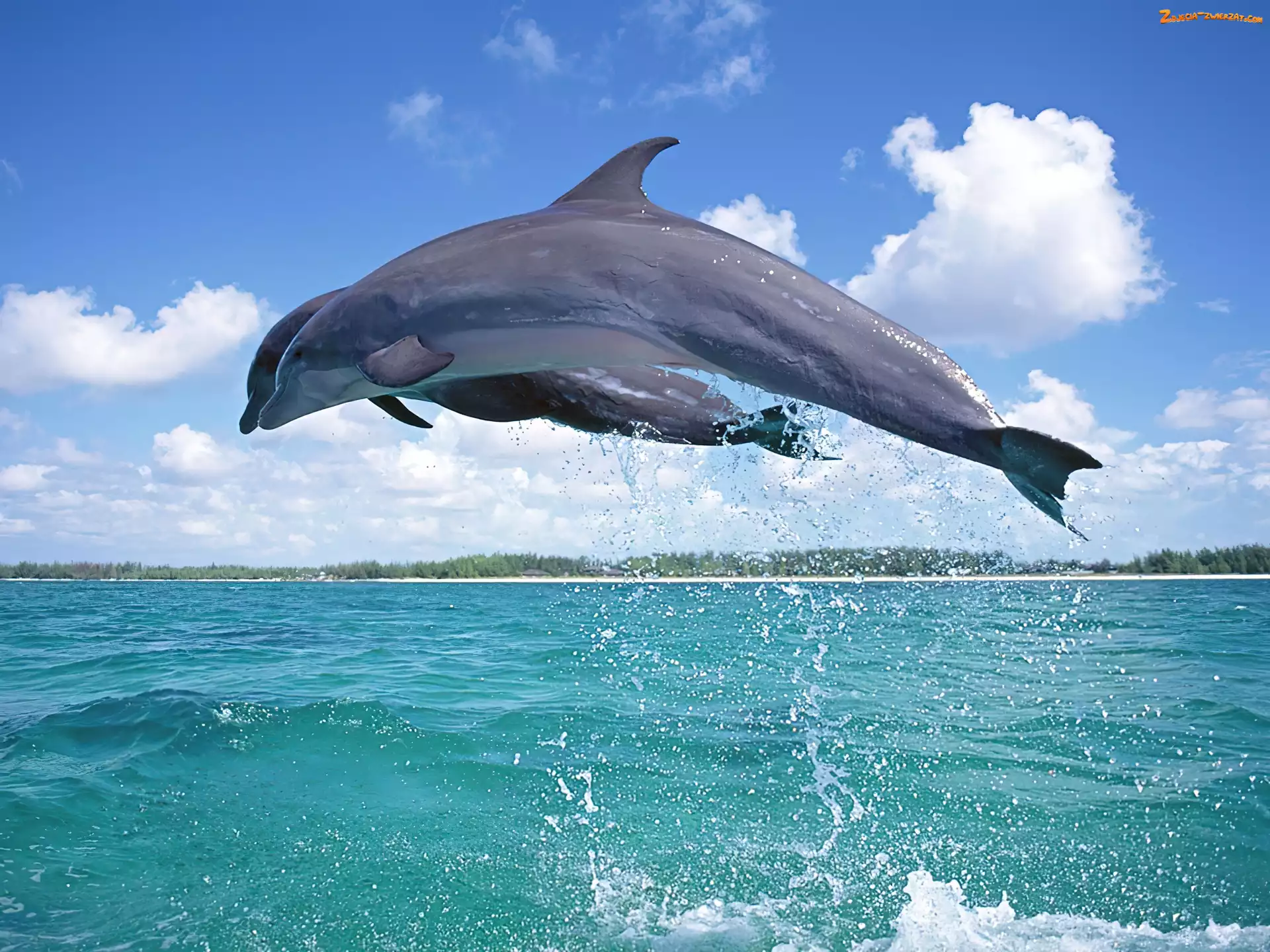 Delfiny, Niebo, Dwa, Morze