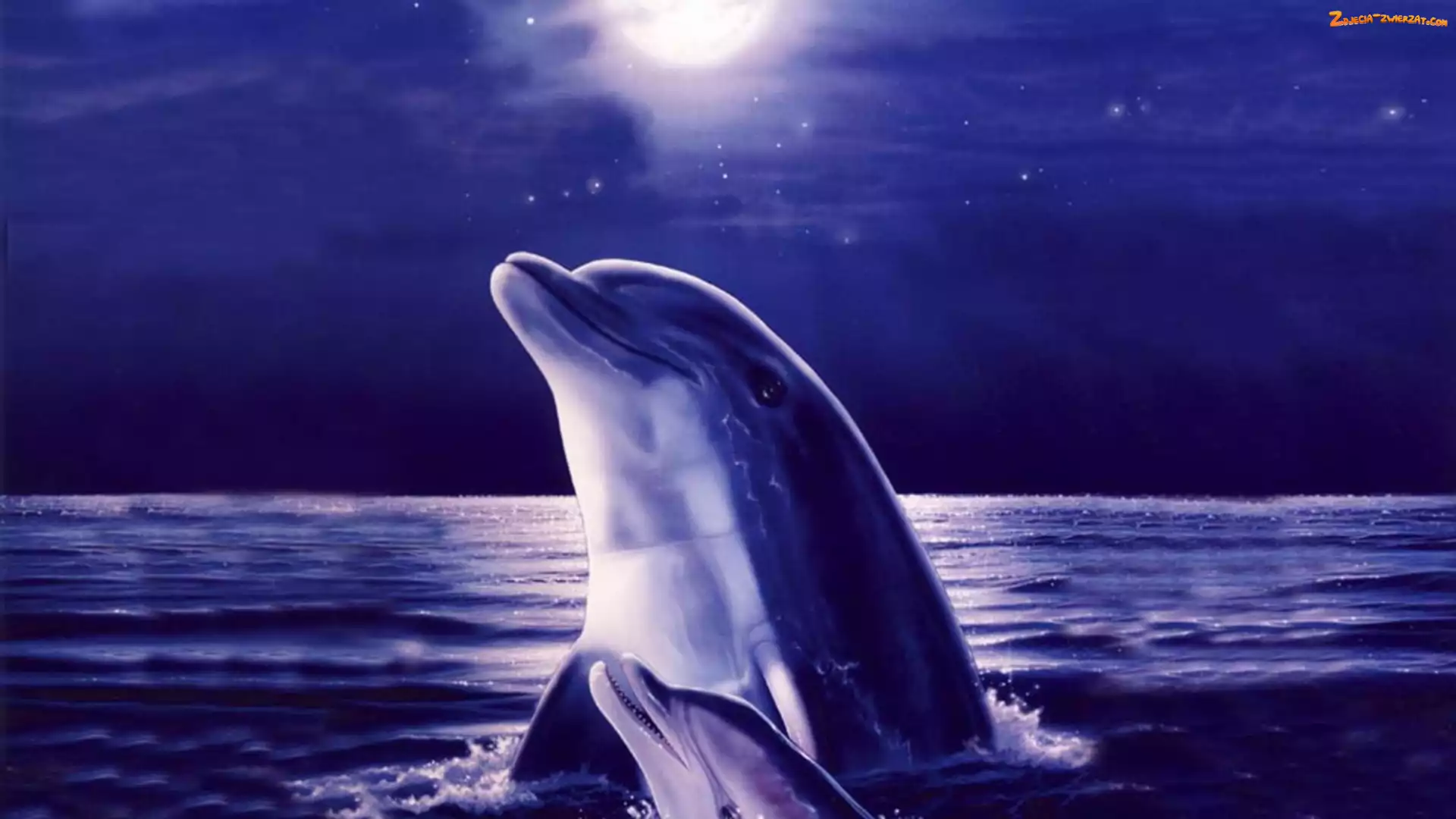 Zdjęcie: Delfiny, Księżyc, Dwa, Woda
