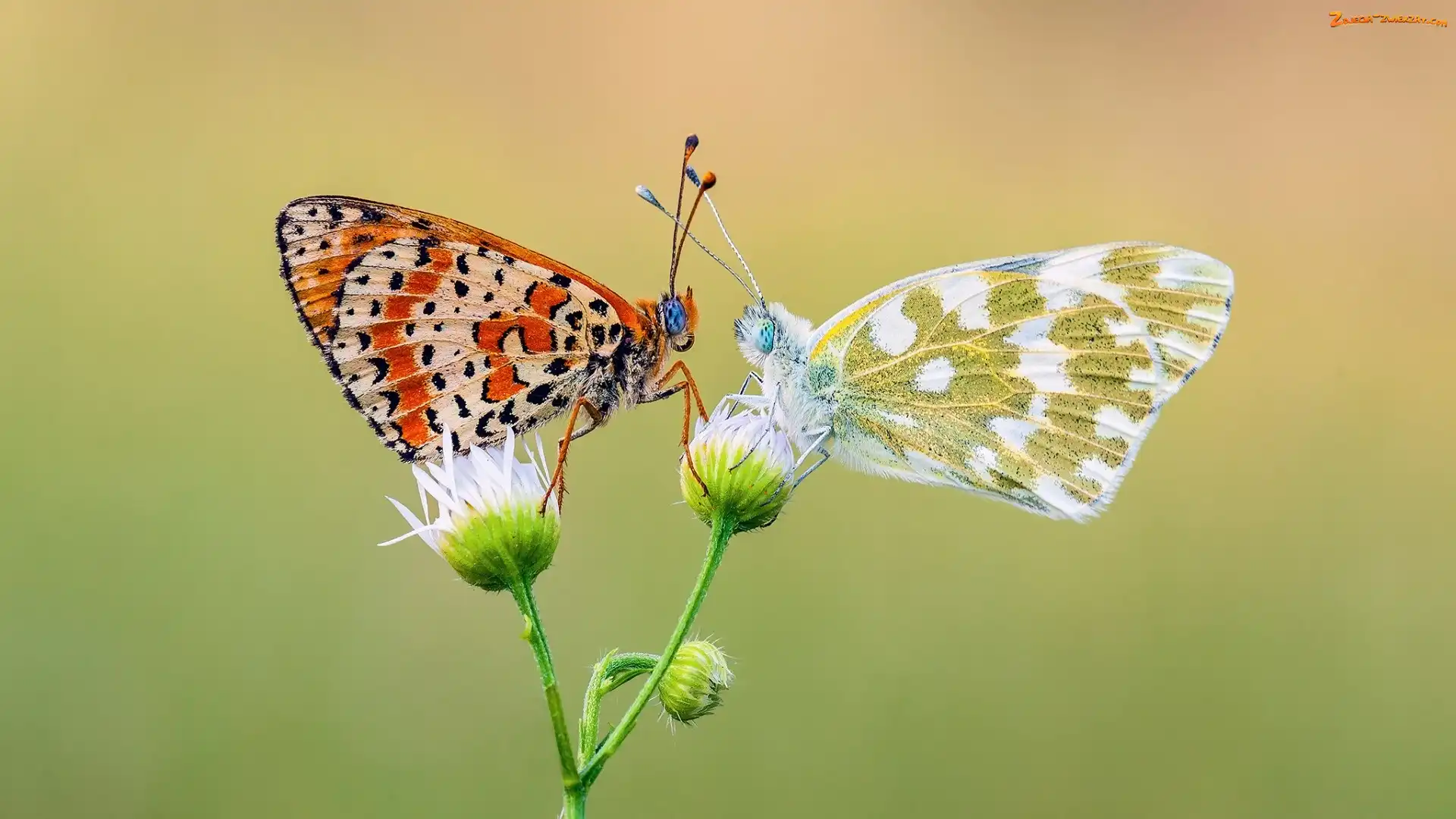 Zdjęcie: Przeplatka didyma, Dwa, Makro, Kwiaty, Motyle, Bielinek rukiewnik