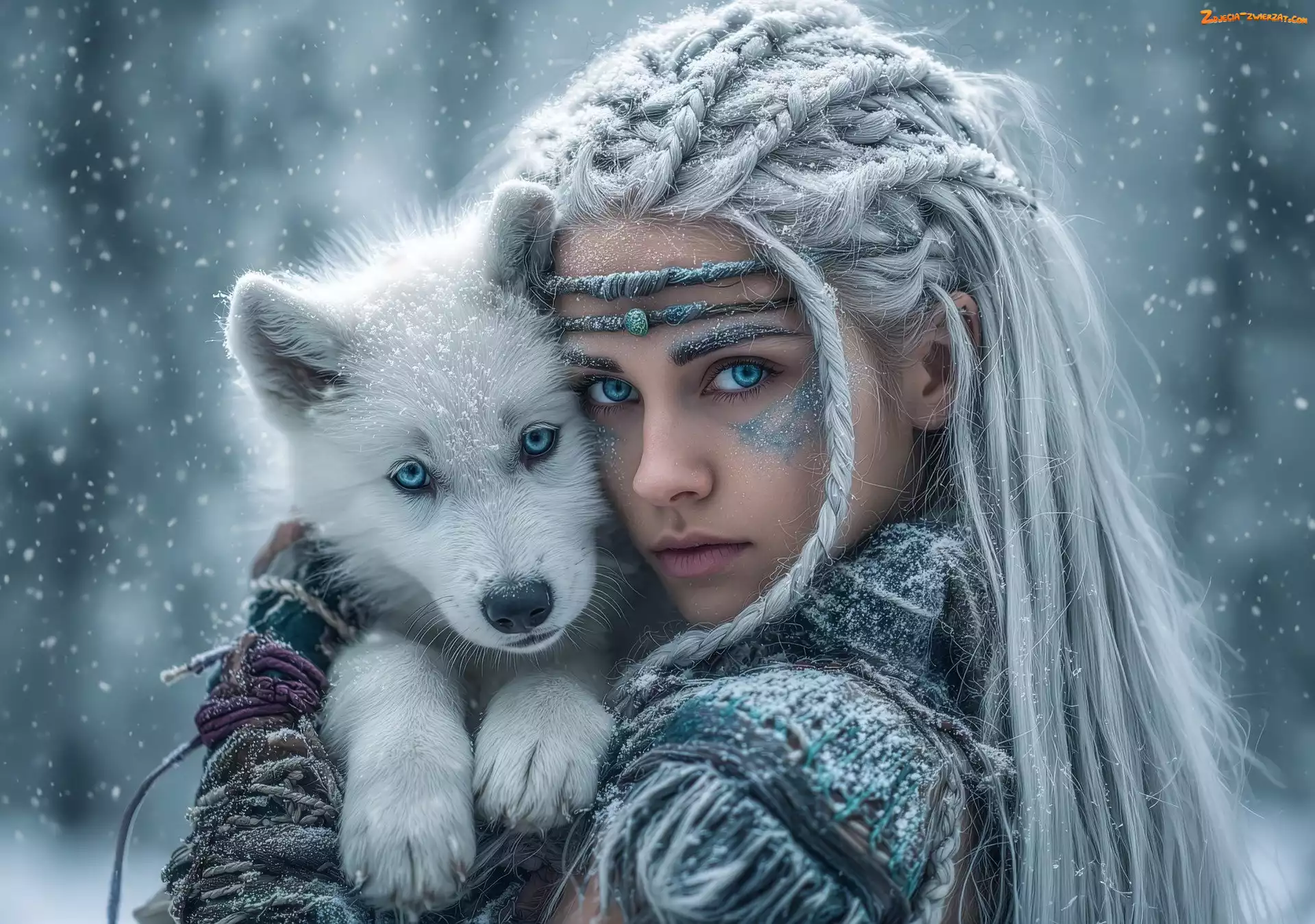 Zdjęcie: Śnieg, Włosy, Kobieta, Długie, Mały, Wilk