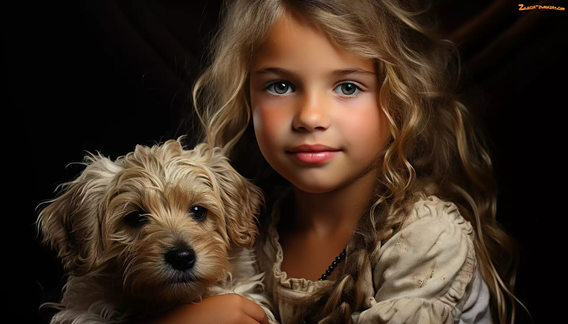 Długie, Dziewczynka, Sukienka, Grafika, Pies, Szczeniak, Włosy, Dziecko, Blondynka
