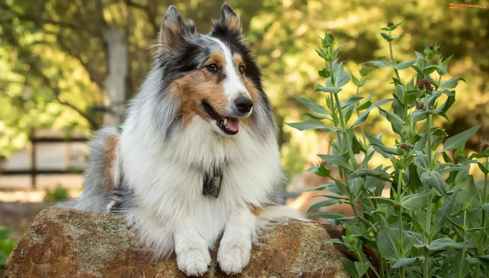Zdjęcie: Pies, Owczarek szkocki długowłosy, Rośliny, Kamień