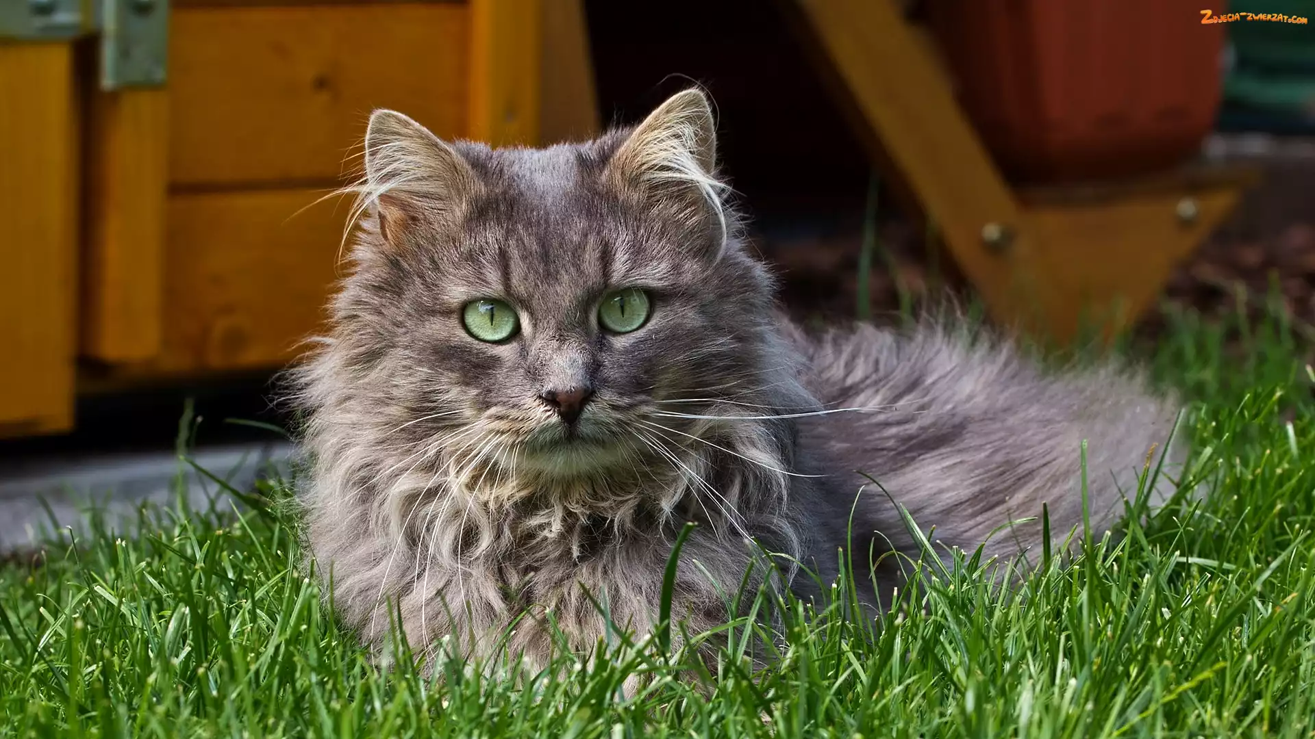 Zdjęcie: Długowłosy, Trawa, Szary, Kot