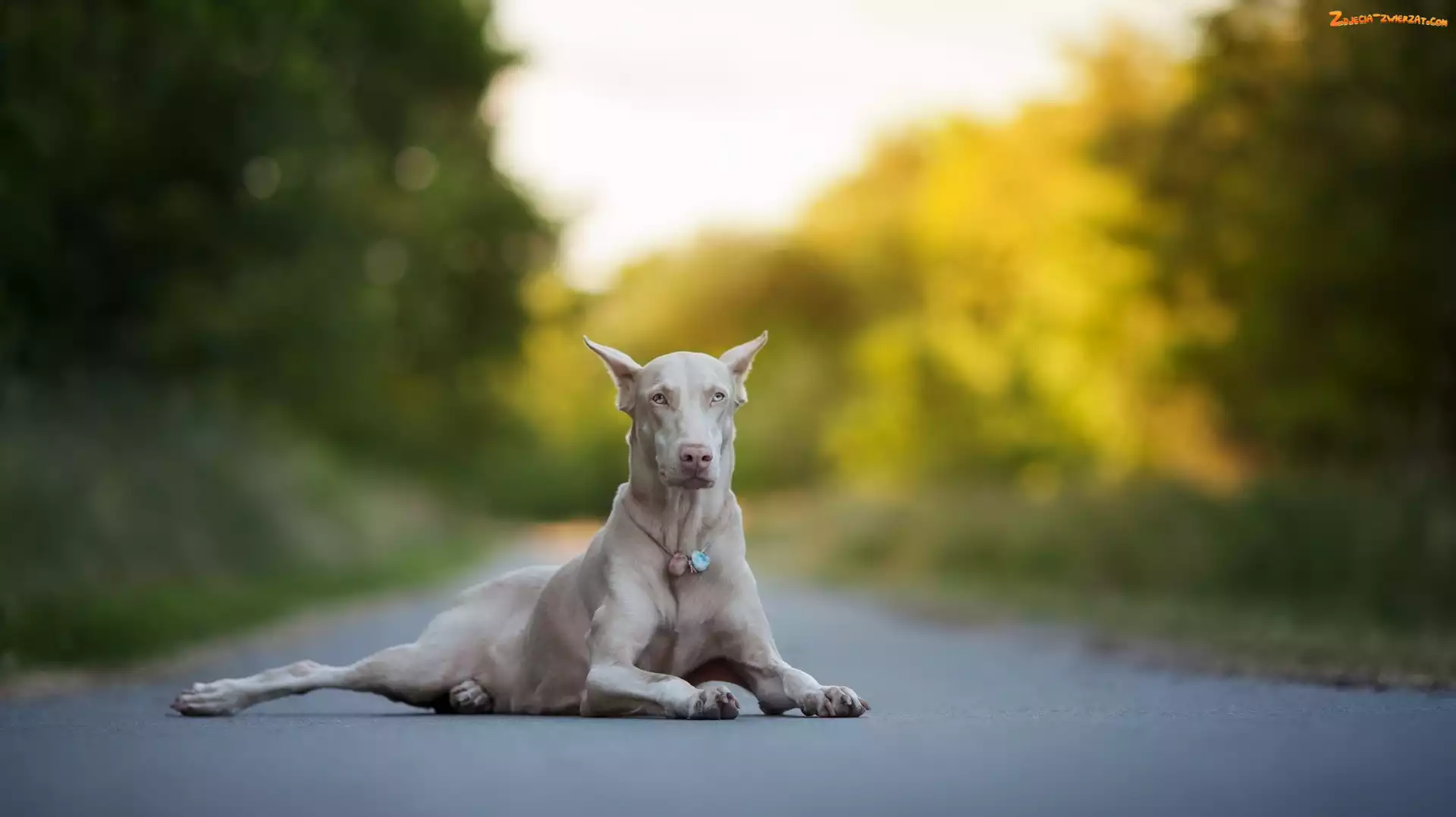 Zdjęcie: Doberman, Droga, Pies, Albinos