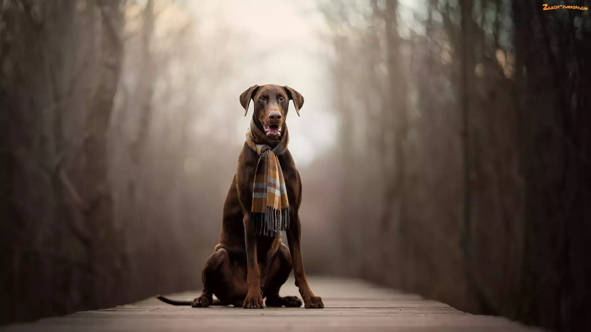 Zdjęcie: Doberman, Kładka , Pies, Szalik