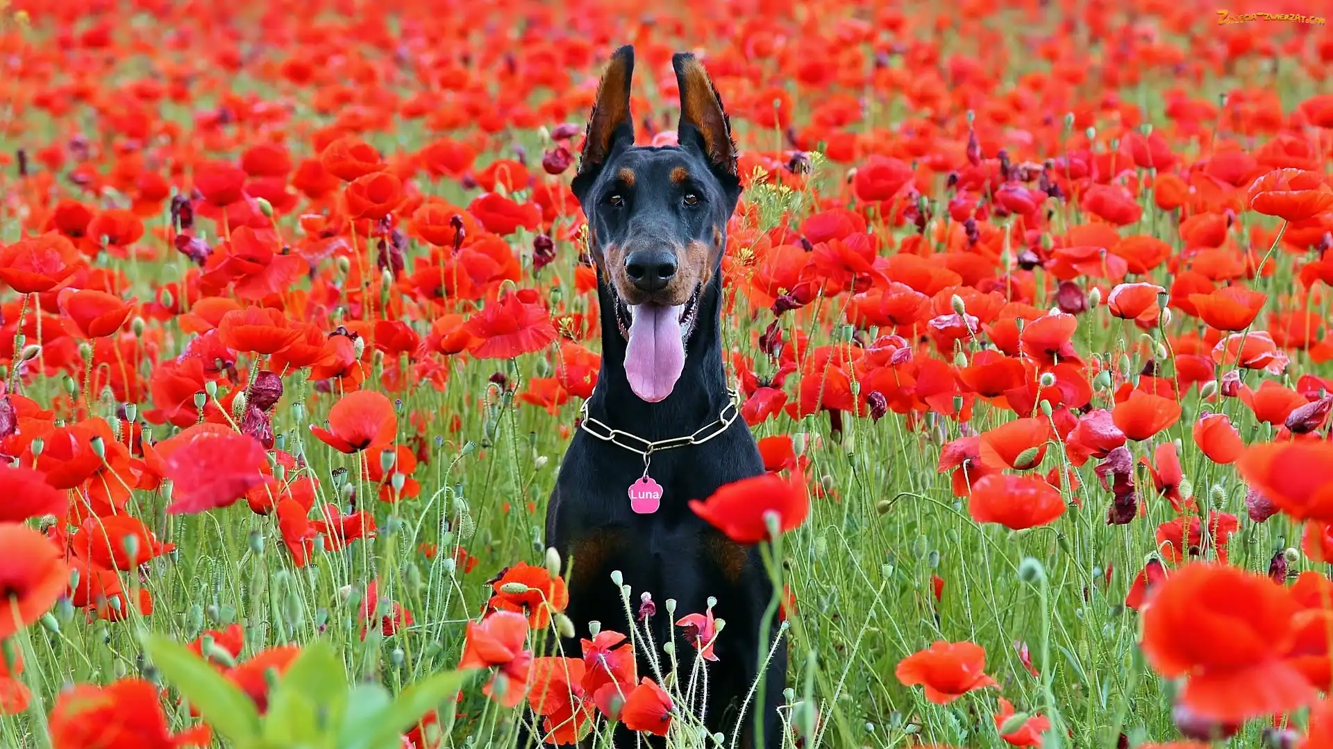 Doberman, Maki, Pies, Łąka