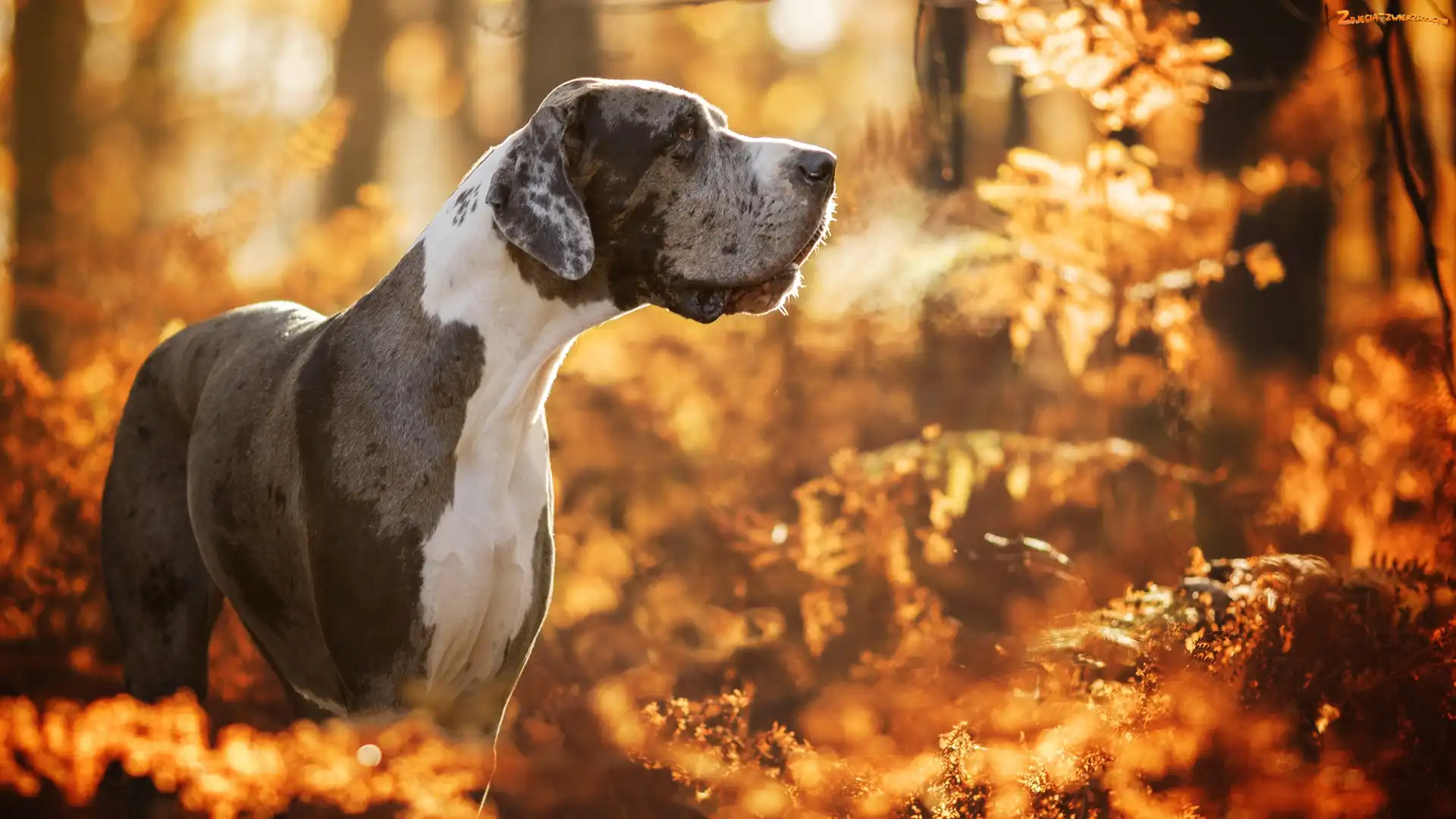 Zdjęcie: Dog niemiecki, Las, Pies, Umaszczenie merle