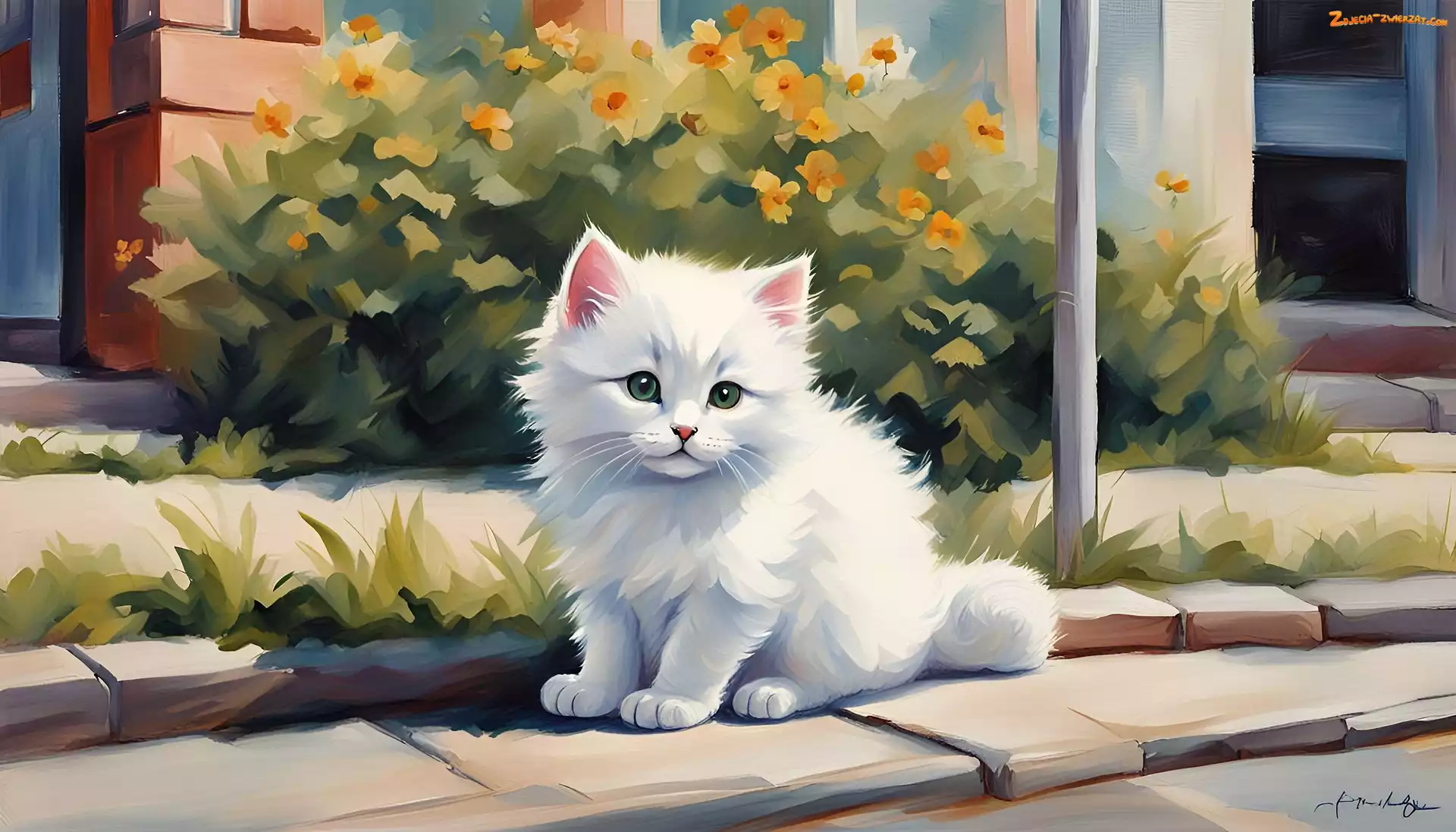 Zdjęcie: Kotek, Kwiaty, Obraz, Dom