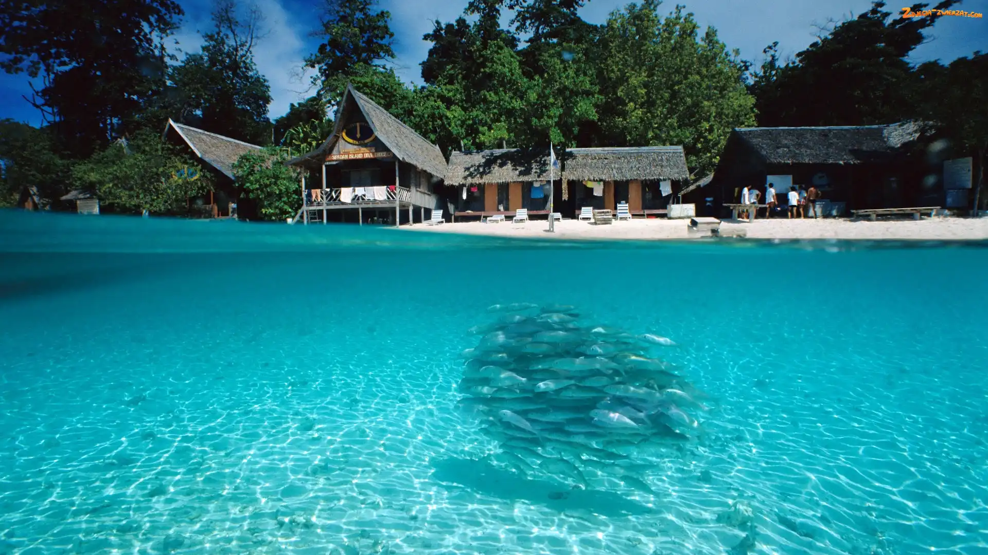 Zdjęcie: Domki, Morze, Tropikalne, Drzewa, Rybki, Letniskowe