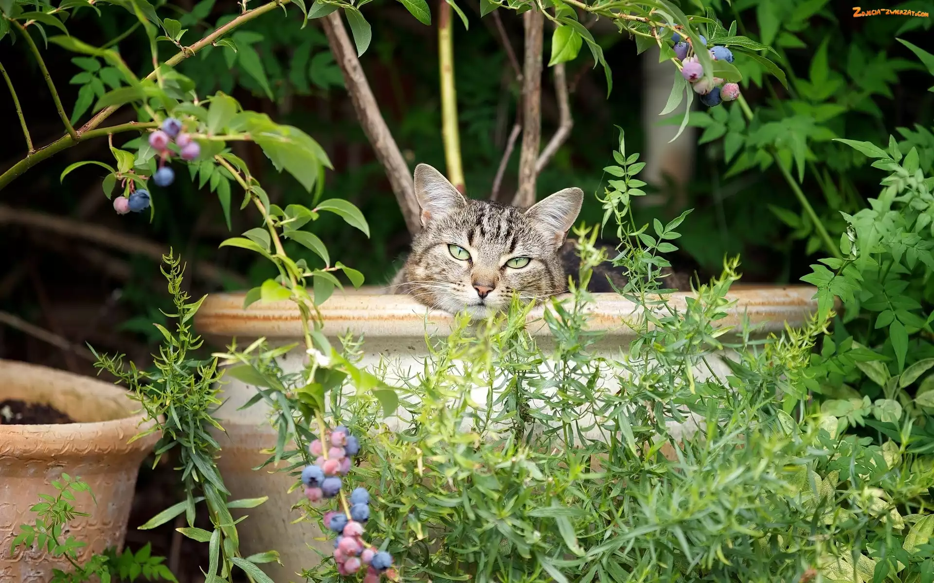 Zdjęcie: Donica, Krzewy, Kot, Park