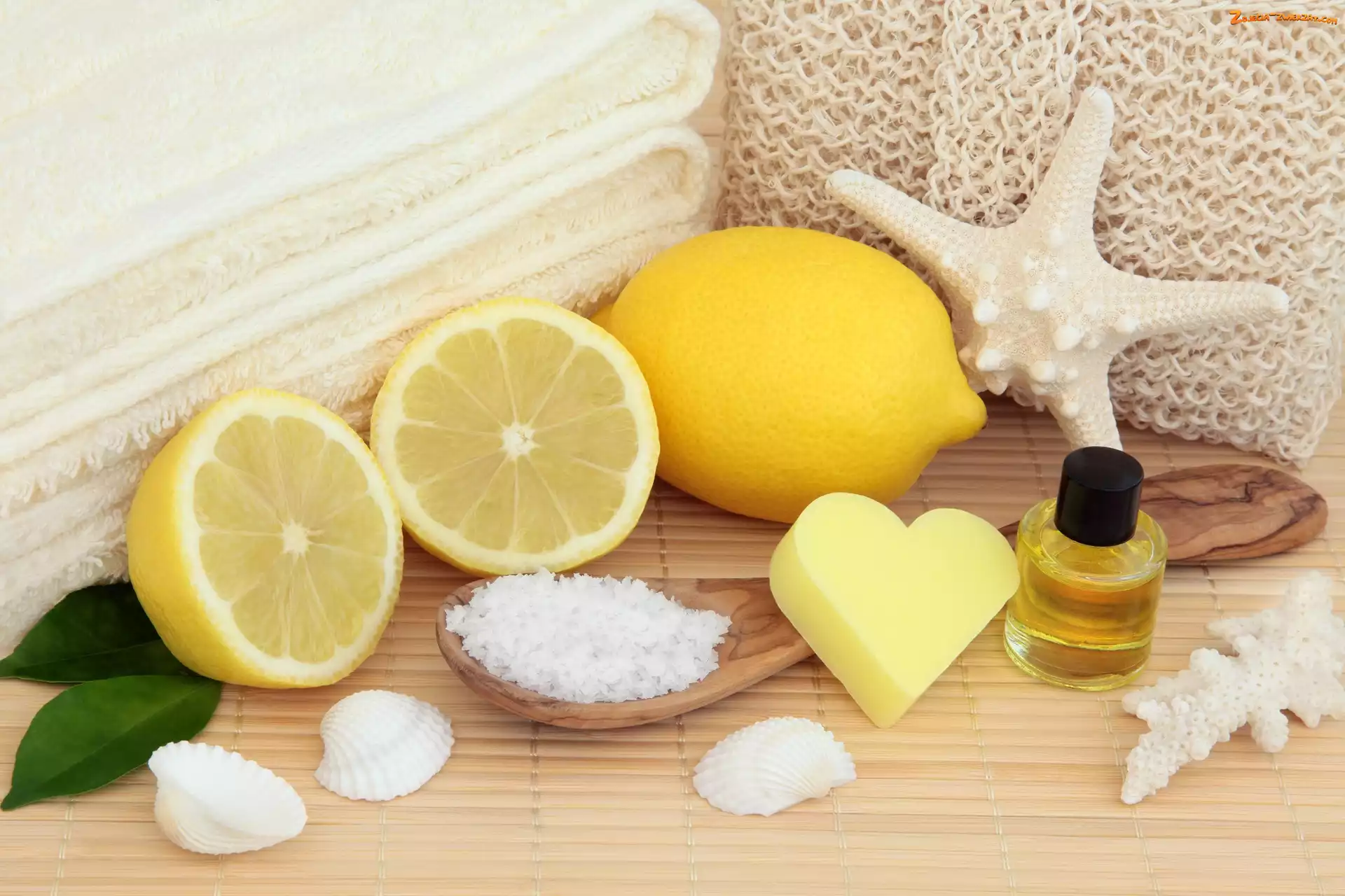 Zdjęcie: Serce, Łyżka, Drewniana, Rozgwiazda, Mydło, SPA, Ręczniki, Muszle, Olejek, Cytryny, Sól