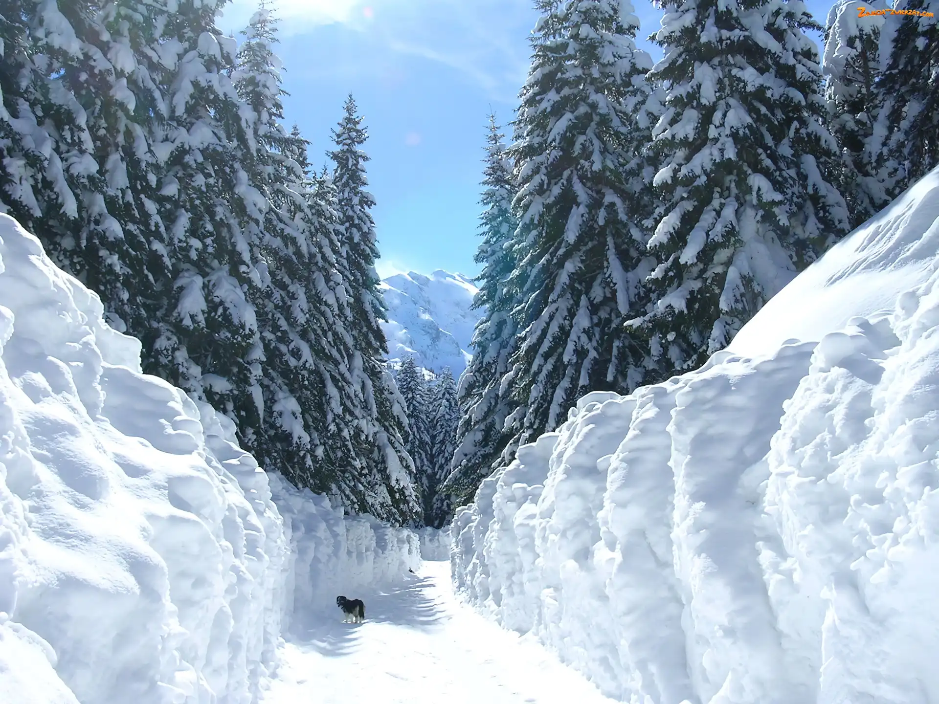 Zdjęcie: Droga, Pies, Las, Śnieg