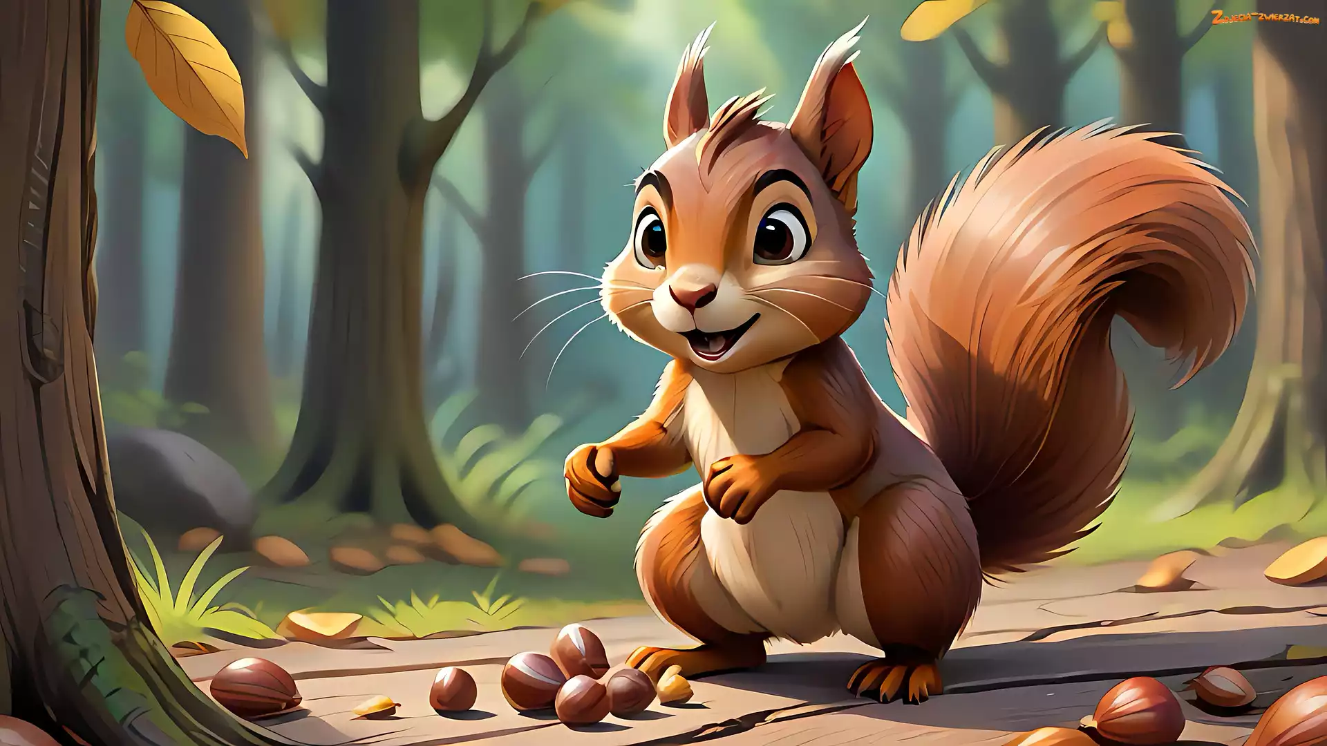 Zdjęcie: Las, Droga, Orzechy, Grafika, Wiewiórka