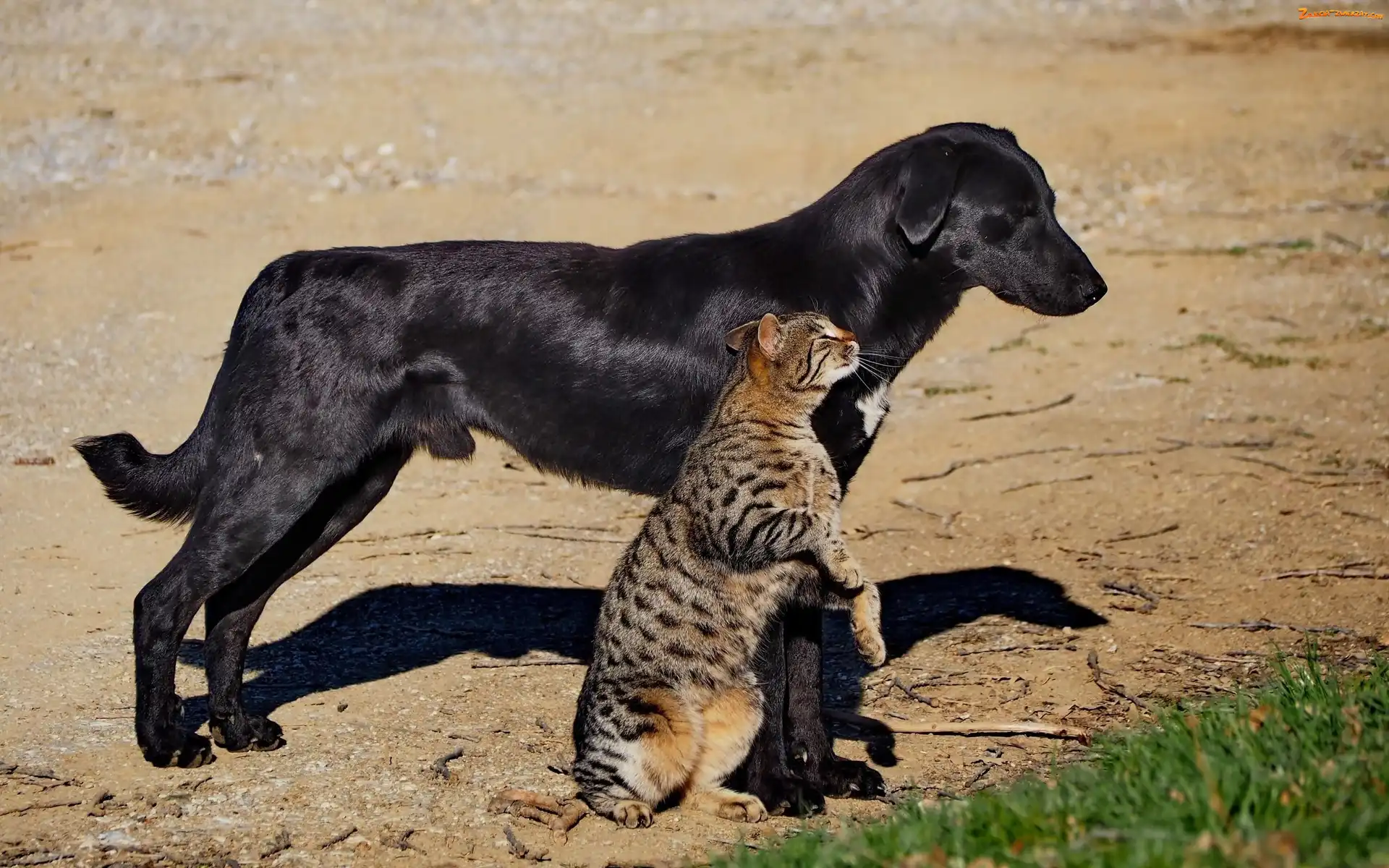 Zdjęcie: Droga, Spacer, Kot, Pies, Przyjaciele