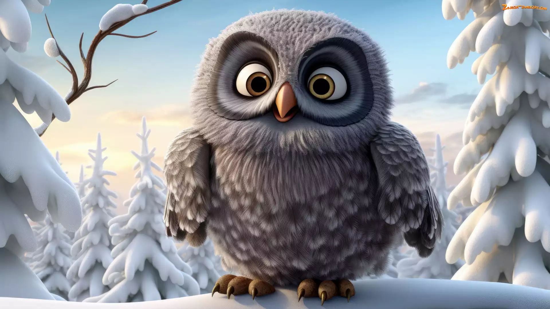 Zdjęcie: Zima, Drzewa, 2D, Sowa, Śnieg