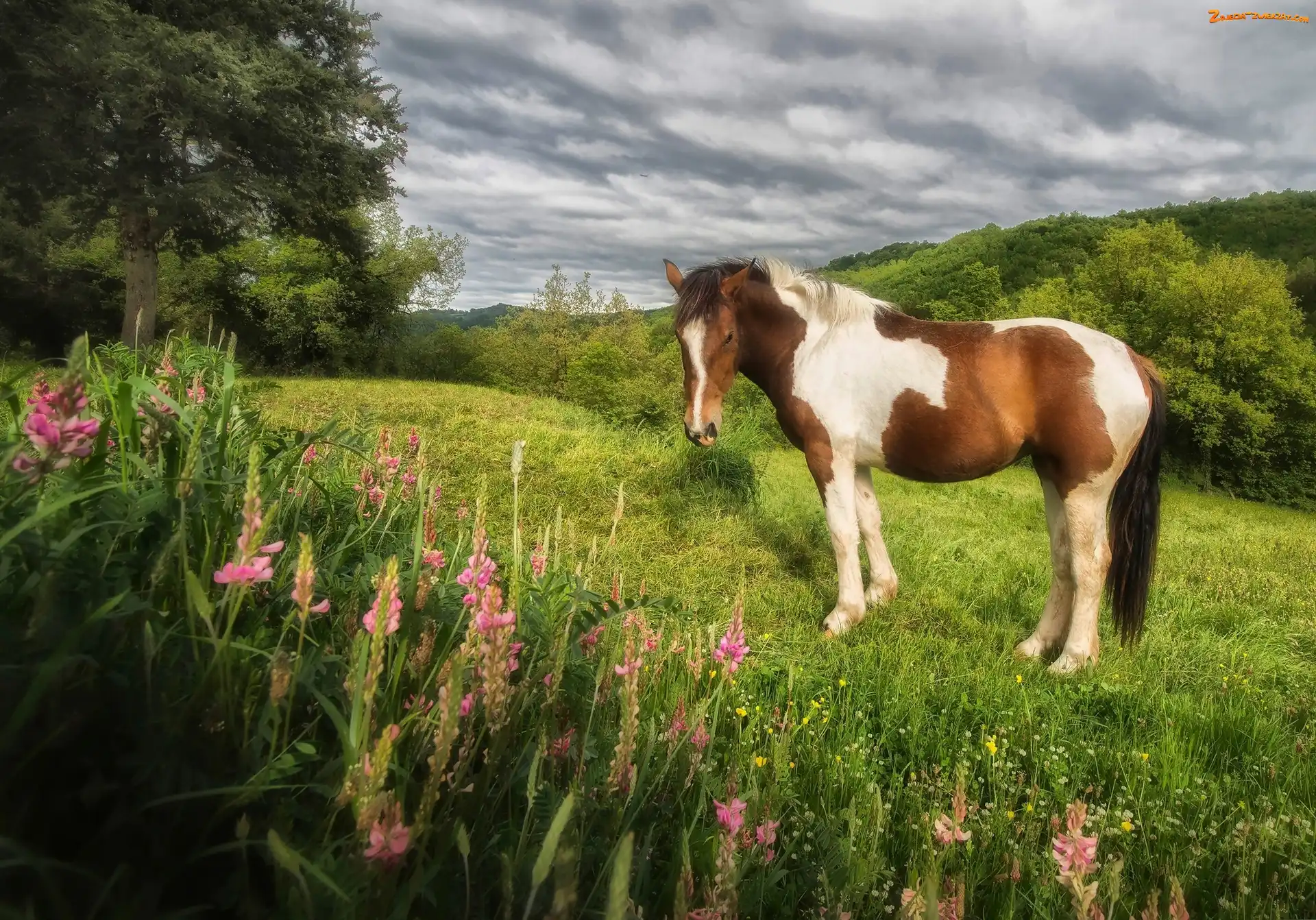 Drzewa, Łubin, Koń, Łaciaty, Łąka