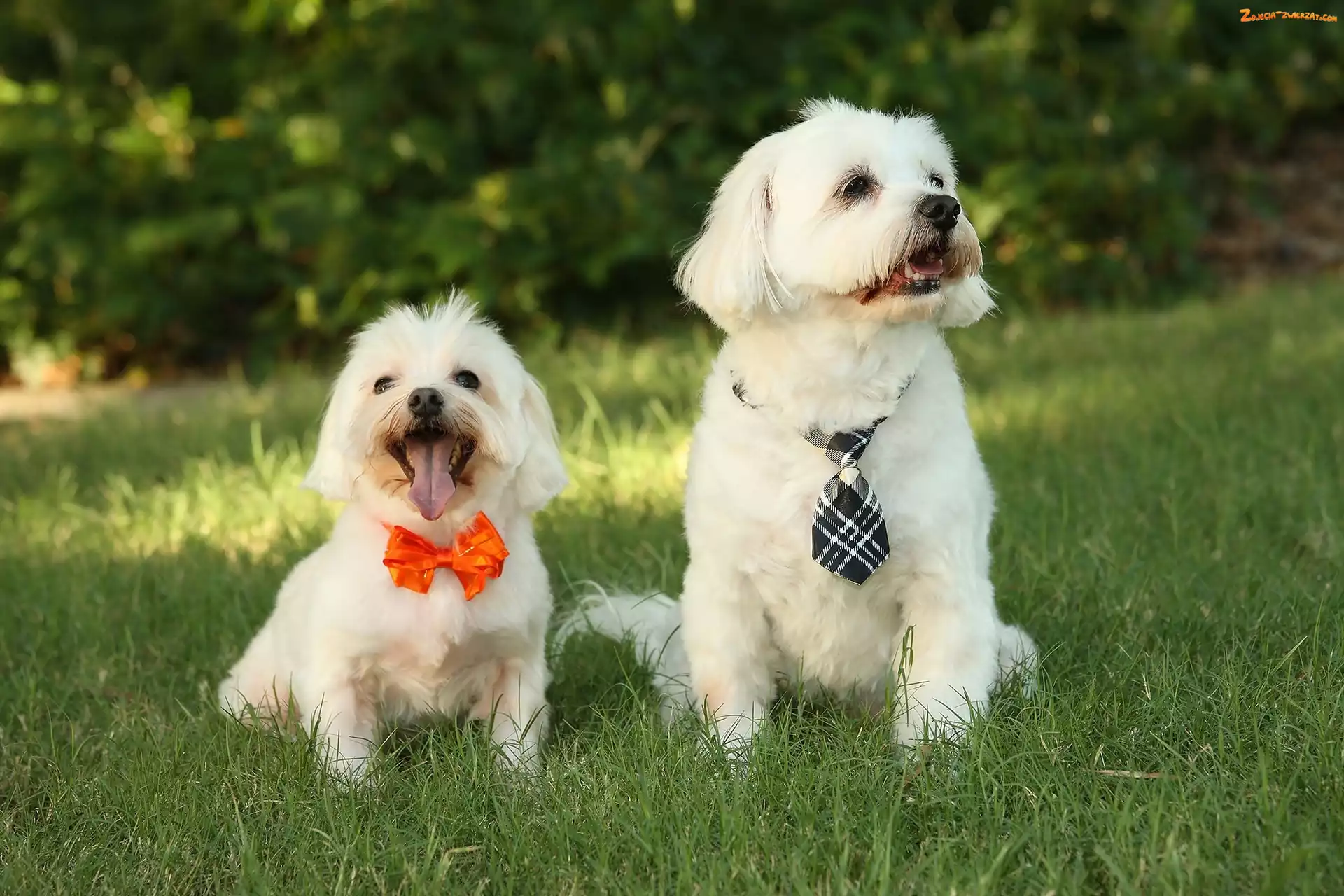 Zdjęcie: Drzewa, Łąka, Urocze, Dwa, Maltańczyki