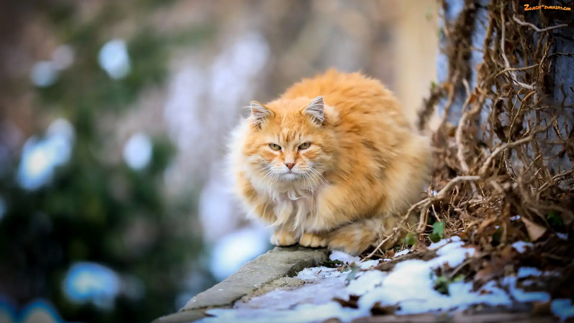 Zdjęcie: Drzewa, Pień, Kot, Rudy, Maine coon