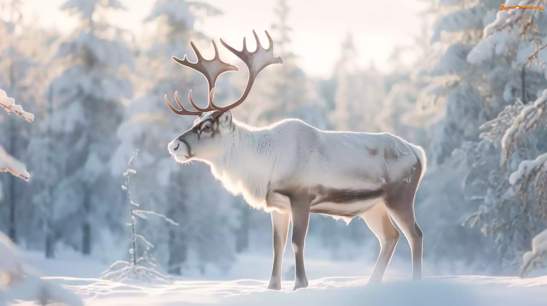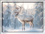 Krzewy, Drzewa, Ośnieżone, Renifer, Zima