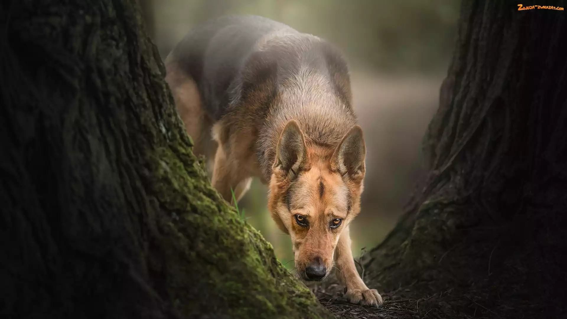 Zdjęcie: Drzewa, Pies, Owczarek niemiecki