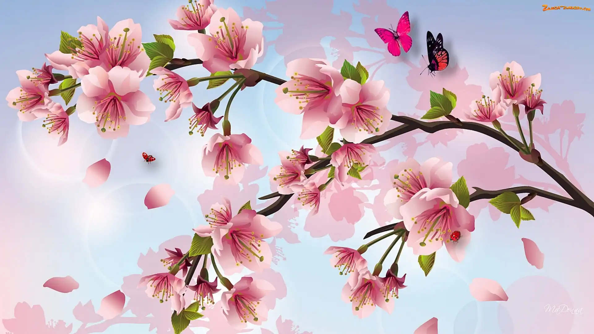 Zdjęcie: Drzewa, Kwiaty, Motyle, Biedronki, Owocowego, Gałązka