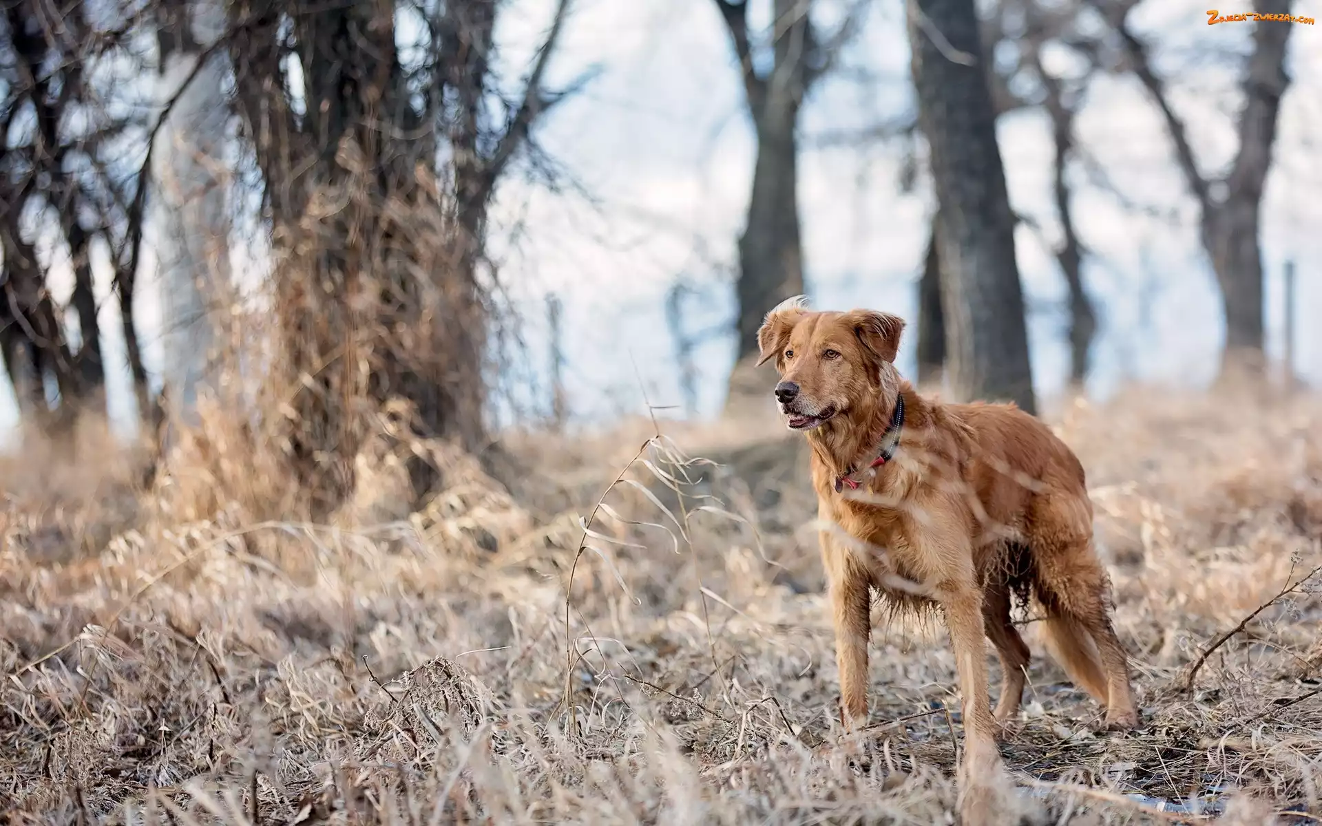 Zdjęcie: Drzewa, Trawa, Pies, Sucha