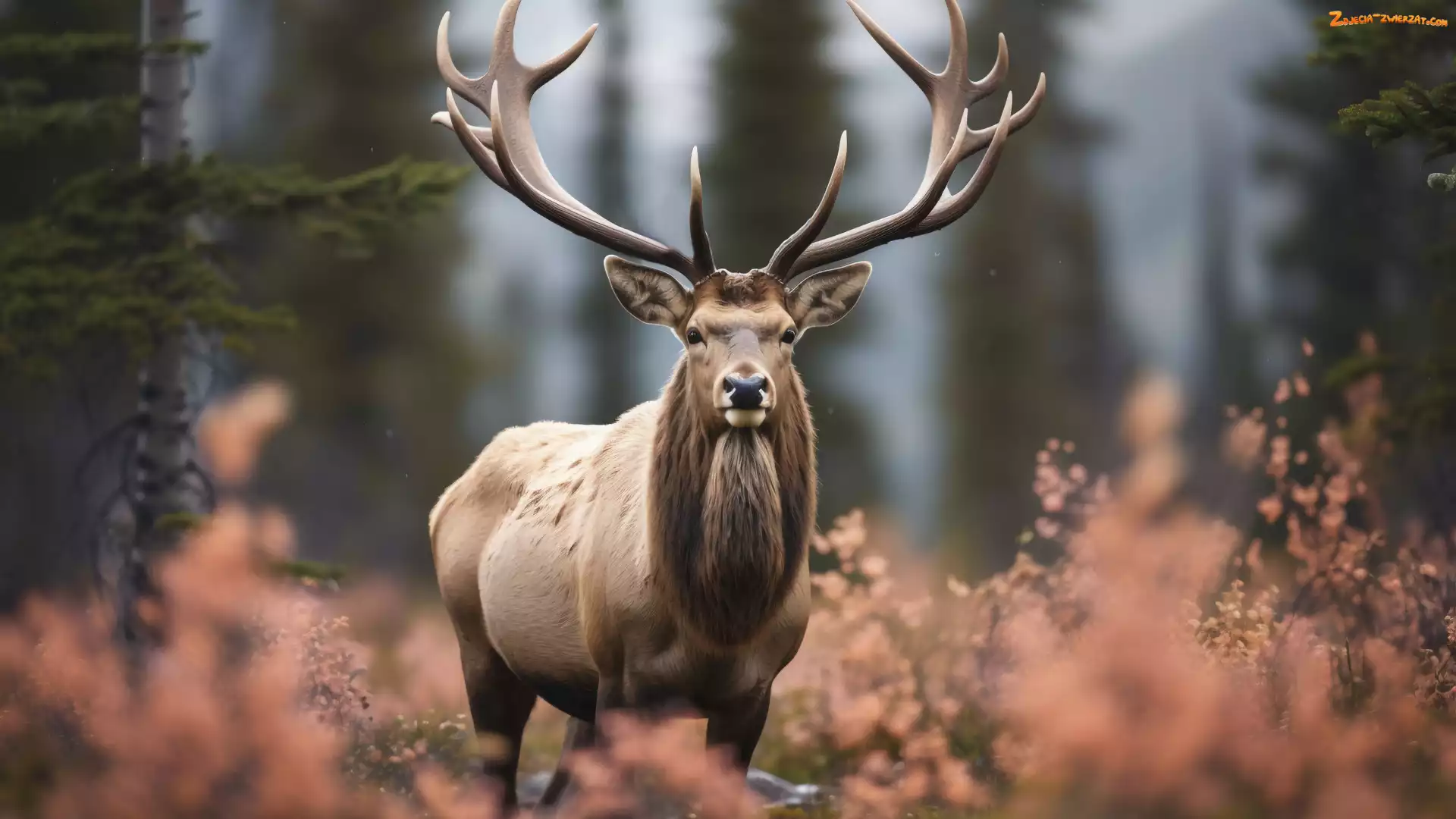 Zdjęcie: Grafika, Rośliny, Las, Drzewa, Jeleń, Poroże