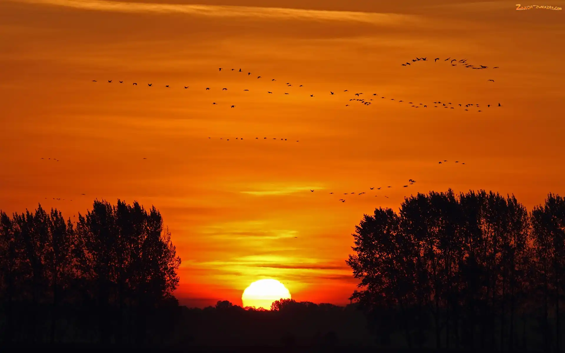 Zdjęcie: Drzewa, Ptaków, Niebo, Zachód Słońca, Klucz