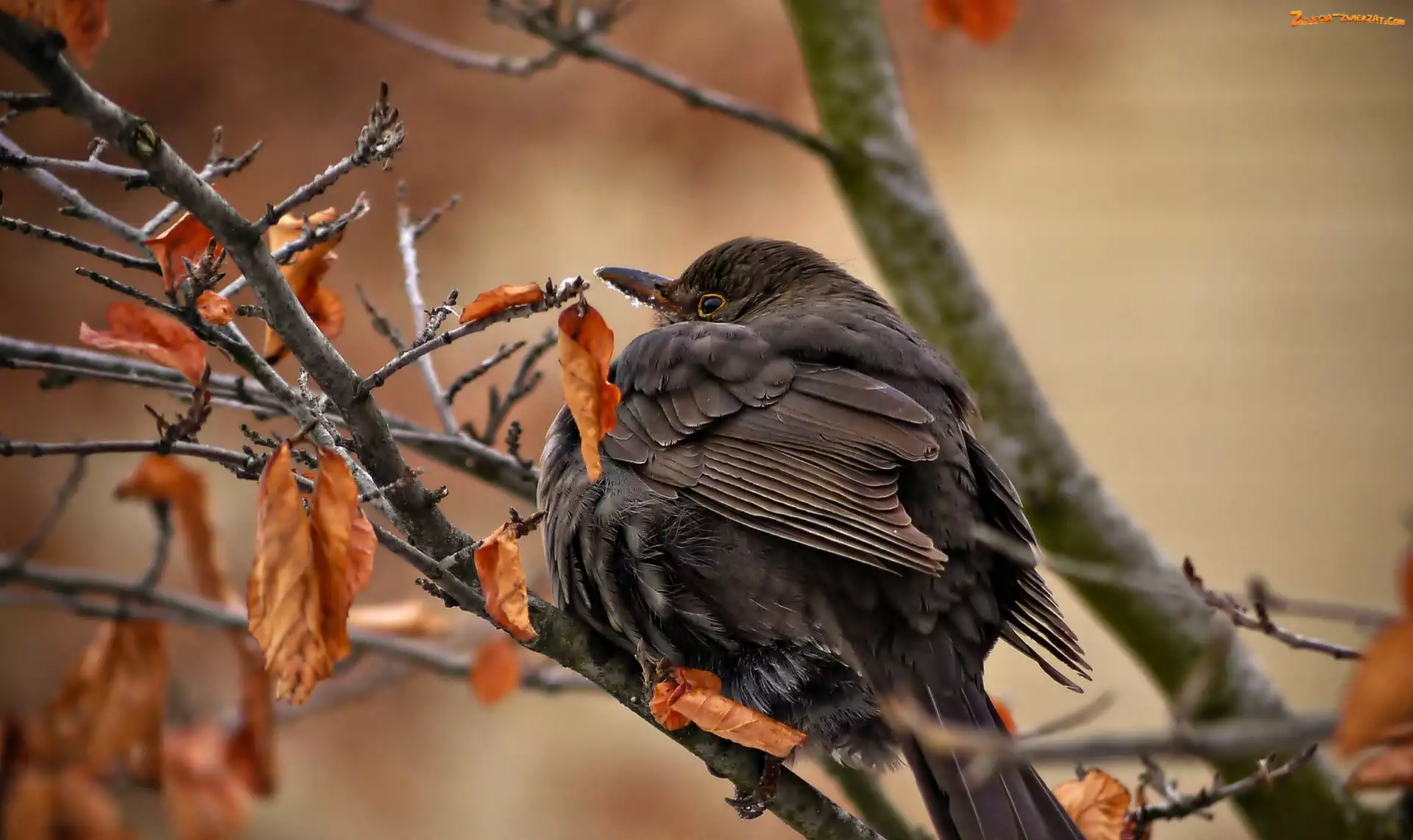 Zdjęcie: Drzewo, Ptak, Liście, Żółte, Jesień, Konary
