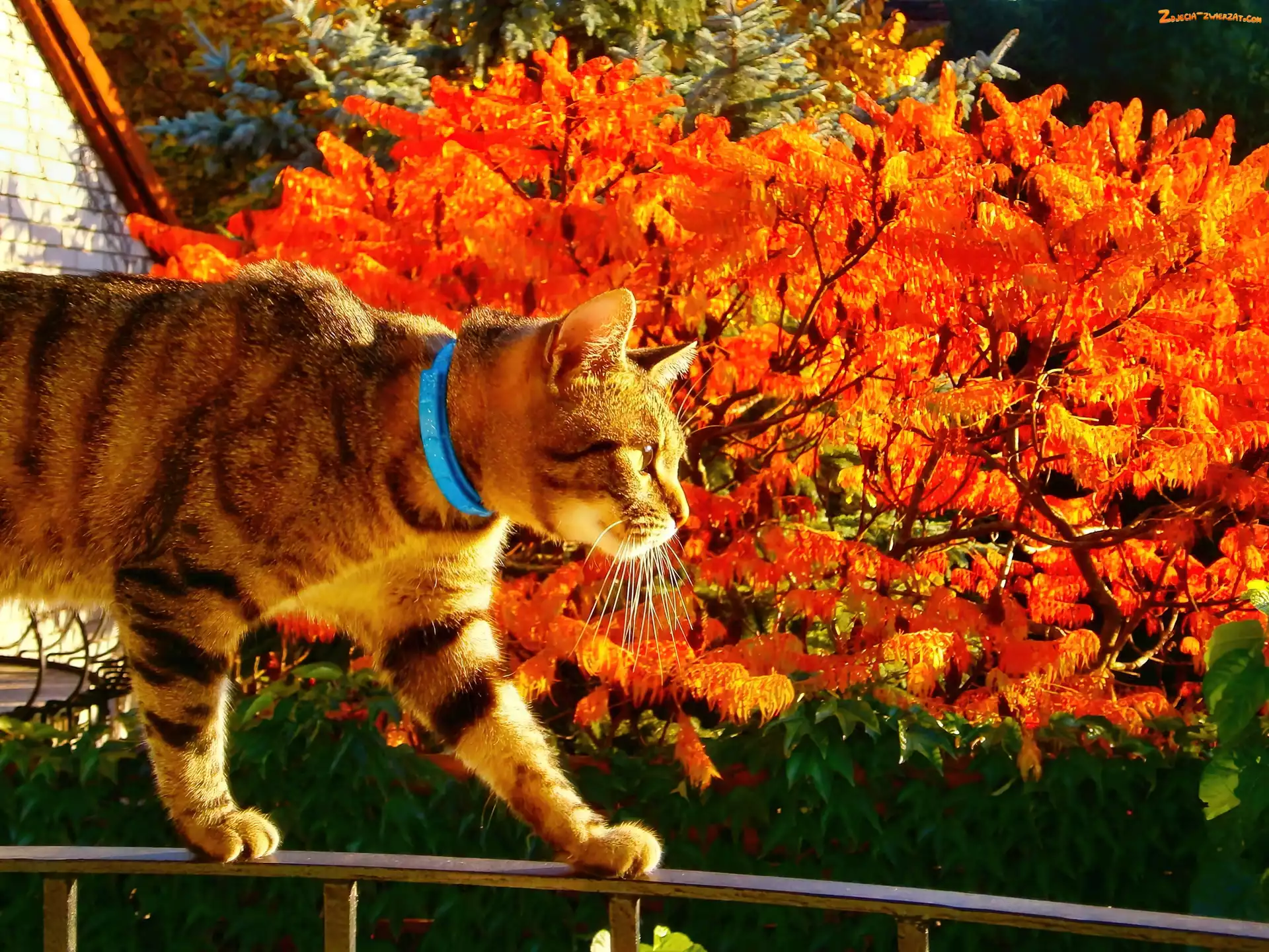 Zdjęcie: Drzewo, Jesienne, Niebieska, Kotek, Obroża