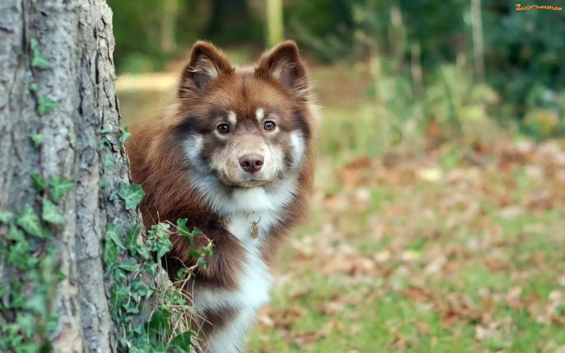 Zdjęcie: Drzewo, Fiński lapphund, Bluszcz