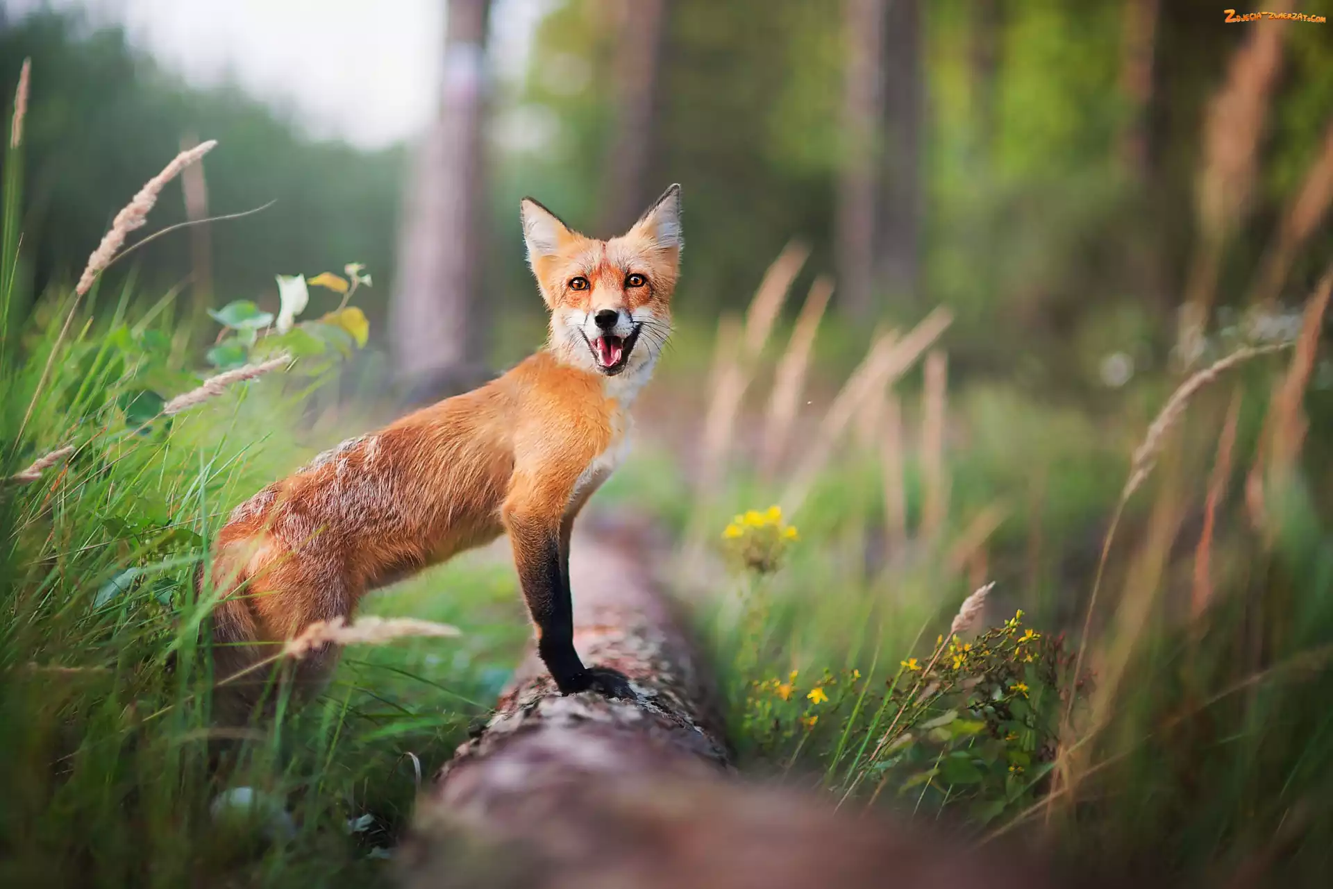 Zdjęcie: Drzewo, Trawa, Lis, Kwiaty