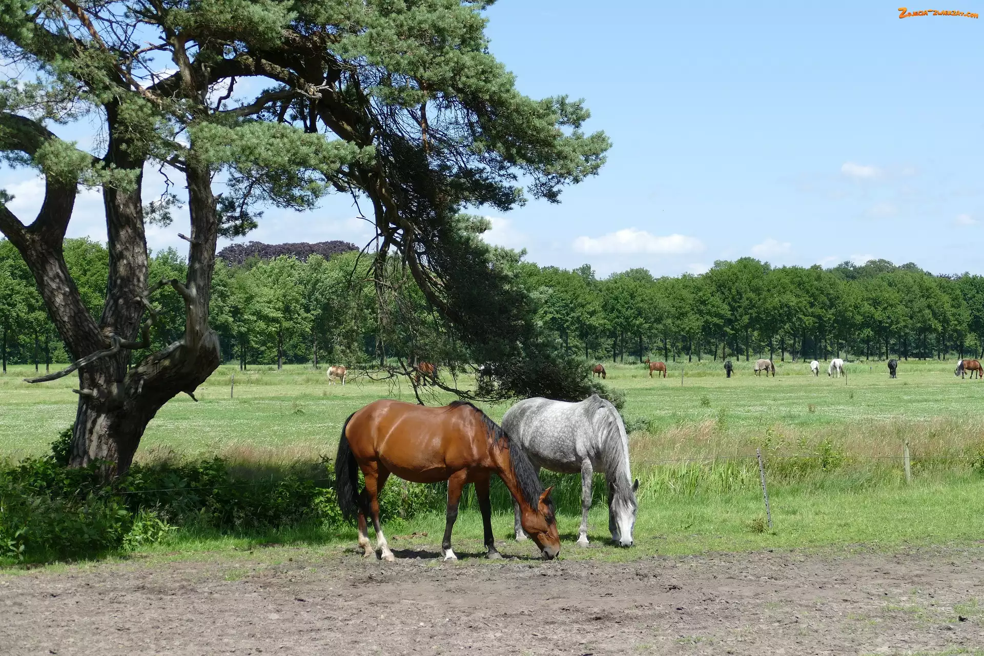Zdjęcie: Drzewo, Konie, Pastwisko