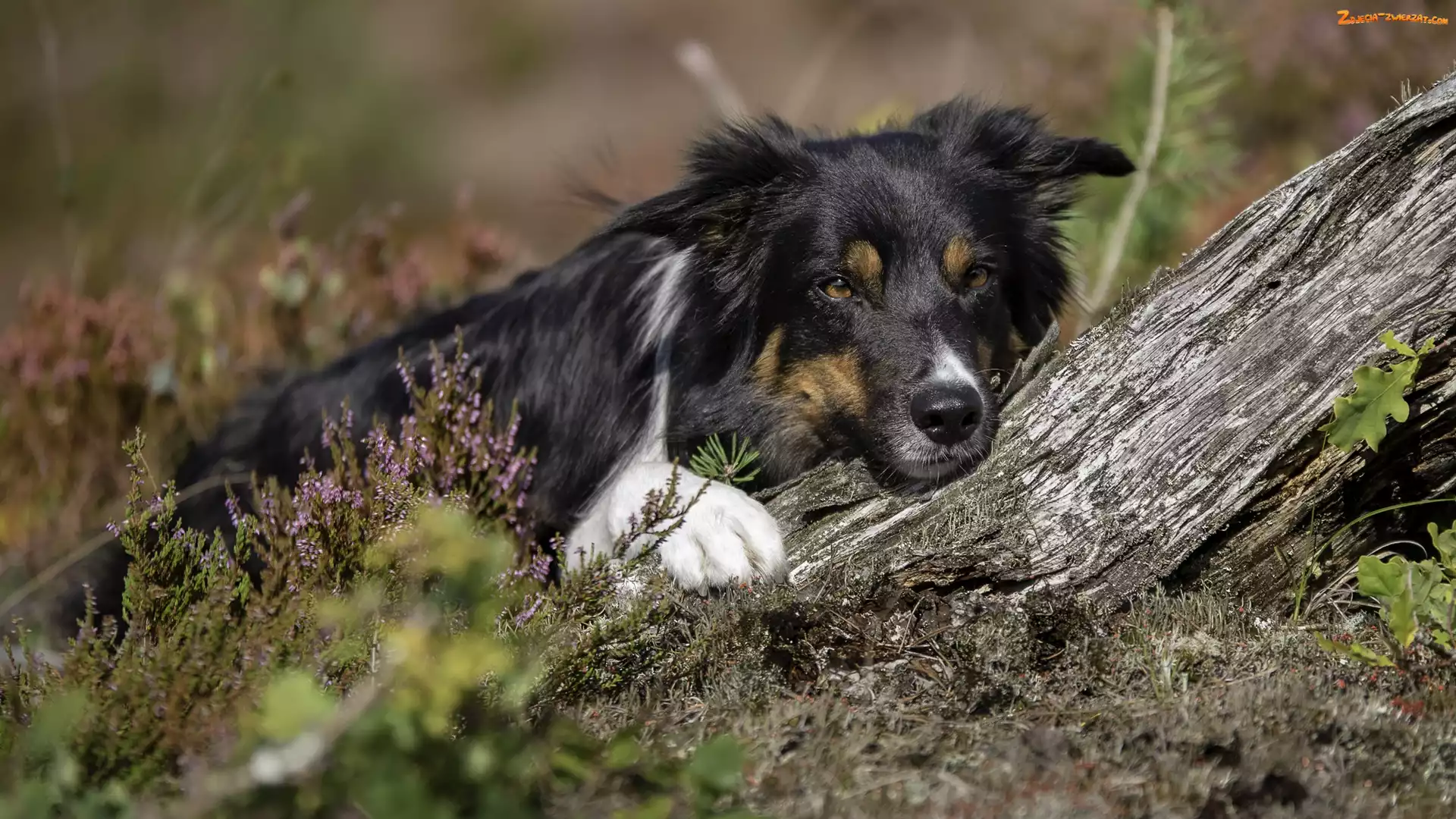 Zdjęcie: Drzewo, Wrzos, Border collie, Pies, Mordka